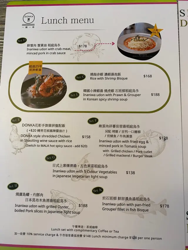 鮮蟹肉 蟹黃油 煮 手打稻庭烏冬 🌟4/5🤓位於中環,位置十分便利,適合附近返工嘅人士。就算lunch hour等位都唔怕太耐!食物方面就非常足料,由頭食到落尾都係啖啖嘅蟹肉!不過可能因為蟹黃油嘅關係,所以食到一半就已經好飽,所以餐廳都有醋提供,落醋食會無咁濟~一碗已經飽到上心口!-食物:8/10環境:6/10服務:6/10-💰 178 HKD (+10% service charge)午市每客最低消費$128查看更多