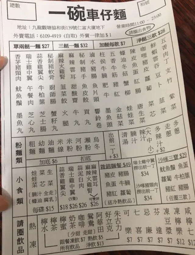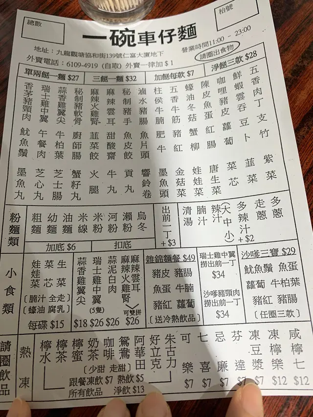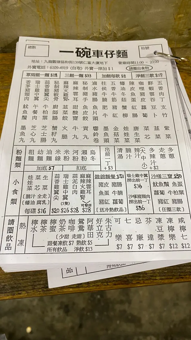 馬鞍山有間壹碗車仔麵 可以試下 個menu好似 應該搬咗係到😂