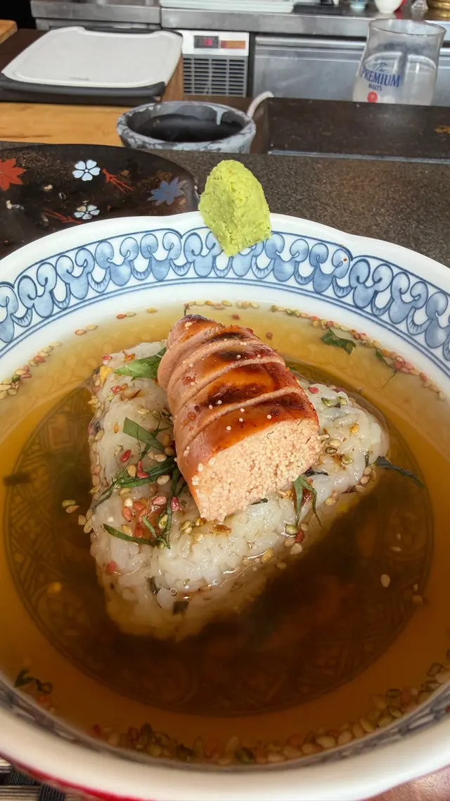 最近去咗一緒一番酒場食lunch,餐廳設以開放式廚房,今次試咗串燒同清酒🍶,望住高空靚景真係好chill❣️ 呢度好適合節日聚會,10人都可以包場可享卡拉OK設施,私隱度極高,聚會更自在!聖誕節包場的好選擇!前菜包括:木魚蒜頭漬、小松菜、黑松露海膽豆腐第一次食木魚蒜頭漬,口感清爽。小松菜,帶有淡淡的甜味、回甘的清爽感。黑松露海膽豆腐,海膽豆腐鮮甜順滑,黑松露加以點綴,即刻令成道菜嘅性價比level 🆙❣️串燒🍢:雞翼、牛舌、白鱔、雞頸、秋葵、雞髀菇近距離睇住廚師係度整串燒,食物燒得好香口,雞翼皮焦脆。牛舌口感彈牙、多汁,帶著濃郁的肉味。白鱔魚皮香脆帶微焦。雞頸彈牙有嚼勁。秋葵帶有淡淡的甜味,口感爽脆。雞髀菇加咗燒汁,嗦咗啲汁更香脆。明太子茶漬飯🍘明太子燒過,外皮香脆,本身帶有鹹香味,好適合加係茶漬飯度,茶底清新。自家製抹茶奶凍🍵奶凍超滑嫩,味道清甜,茶香回甘。清酒🍶陸奧八仙純米吟釀,入口後香氣會充滿口腔,口感柔和、甜潤,帶有淡淡的旨味,以及微酸的收尾。最近,餐廳最近做緊清酒推廣活動,凡於AFTER WORK HAPPY HOUR,惠顧 720ML 清酒,即送價值 $258 串燒組合!每逢星期六午市,惠顧 $680 或 $980 OMAKASE 套餐 ,即享買一送一優惠!…查看更多