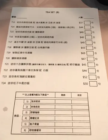同阿媽喺太古行街,食下午茶當晚餐~下午茶做到5點半, 選擇多而且飽肚叫咗兩個餐, 要收加一跟餐飲品除咗芋香珍珠同另一款特飲外,全部冷熱都唔加錢