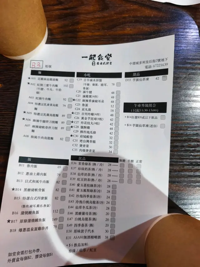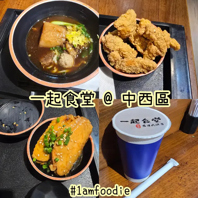 【中西區】【一起食堂】好耐冇捐血,去到中環先發現自己未食嘢,又點捐呢。所以即刻喺附近搵嘢食,見到呢間好似日本餐廳咁嘅裝修,以為食日本嘢。點知睇餐牌先見到,原來係台灣嘢,唔緊要啦,照食。因為見到佢哋嘅「下午茶套餐」都唔貴,既然趕住食嘢,好好醜醜又一餐。主食揀咗 $52 嘅「迷你三寶牛肉麵」,所謂嘅三寶就係牛腱、牛丸同埋牛肋條,估唔到個牛肋條有啲質素,湯底都幾好,以呢個價錢喺中環嚟講唔差喎。個套餐仲有「小食或飲品」二選一,我揀咗小食「鹽酥雞」,味道就正正常常,只能夠講佢係唔差。不過我又點會唔飲嘢吖,加 $10 就可以要多款「小食或飲品」,加咗凍「珍珠奶茶」,好一般,不過就梗係冇港式奶茶咁好飲啦。我見佢加十蚊都唔貴,就加多份「滷雞翼」,合理嘅味道,冇乜亮點,擺得落口。喺中環咁樣食法,埋單先係 $72,冇嘢挑剔。。。(地址:中環域多利皇后街2號地舖)#1amfoodie #foodie #hkfoodie #thatfoodiething #food #instafood #globaleats #dessert #foodpics #followforfollowback #love #eat #1am中西區 #中環 #香港 #一起食堂 #下午茶套餐 #迷你三寶牛肉麵 #牛腱 #牛丸 #牛肋條 #鹽酥雞 #珍珠奶茶 #滷雞翼 #1am1914 #1ambackup…查看更多