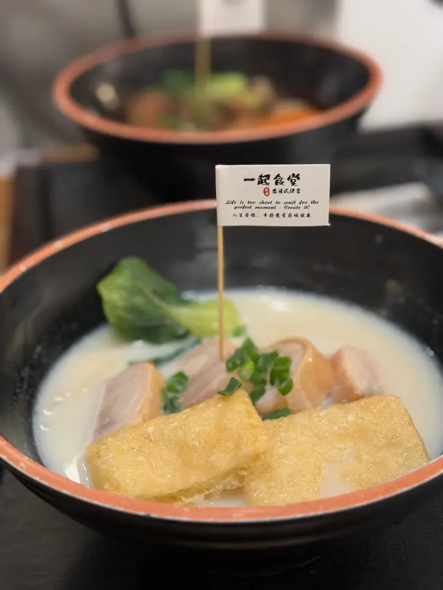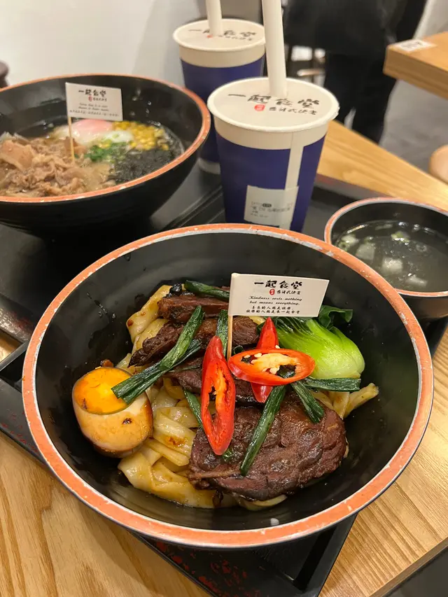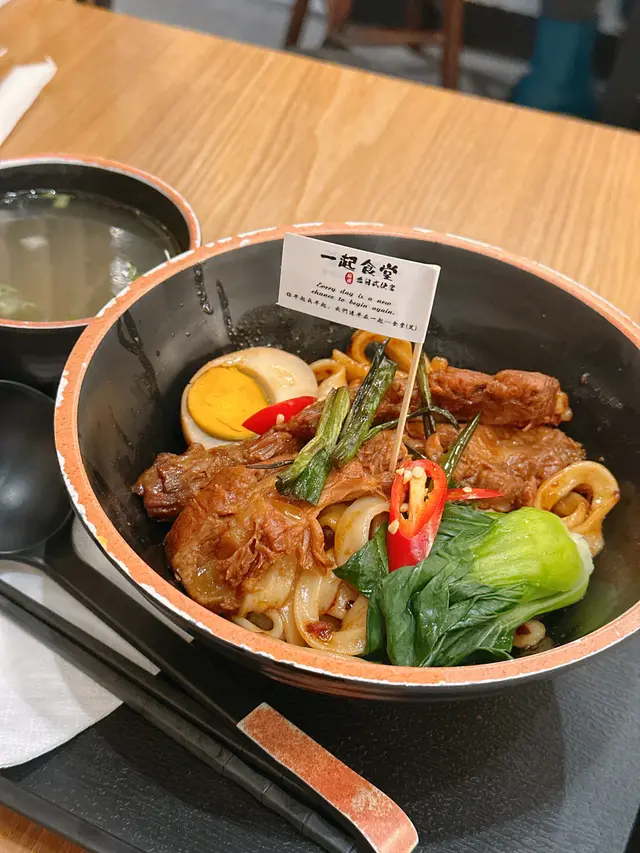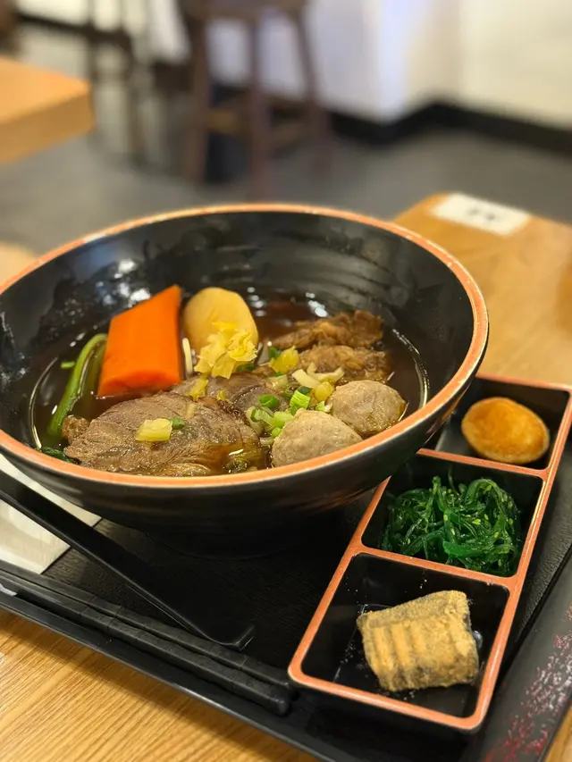 最近去了位於灣仔的「一起食堂」,感覺非常驚喜!結合台灣與日本風味的特色餐廳,店面不大但裝潢以木色為主,營造出簡約舒適的用餐氛圍,讓人感覺親切溫馨。店員態度親切,出餐速度快,外賣自取亦非常方便,整體性價比高,適合想品嘗地道台灣味及日式便當的食客。紅燒三寶🐮牛肉麵🍜是店內招牌之一,湯頭帶有微甜且濃郁的牛肉香氣,融合了牛肋肉、牛腱和牛丸三種不同口感的牛肉部位,層次豐富。麵條選用類似烏冬的彈牙麵底,能很好地吸附湯汁,整體口感滑溜且有嚼勁。麻辣🐷豬軟骨拌刀削麵🍜豬軟骨燉得軟嫩入味,帶有麻辣香氣,辣度適中且層次豐富,十分開胃。刀削麵份量十足,麵條厚實有嚼勁,每條都均勻掛滿麻辣醬汁,口感爽滑且充滿香麻味道。整體搭配恰到好處,既能感受到豬軟骨的軟嫩,又能享受刀削麵的彈牙,適合喜歡重口味和麻辣風味的食客。麵餐還可以追加迷你小食🤩麻辣香滷豬耳朵🐷,豬耳朵切得比較厚身,口感特別爽脆。麻辣的調味恰到好處,不會過於刺激,能品嚐到豬耳朵本身的鮮味。這道菜非常適合搭配飲品,無論是啤酒還是其他飲品,都能帶來清爽開胃的感覺。整體而言,一起食堂灣仔店以親民價錢提供高質台日料理,性價比高👍🏻…查看更多