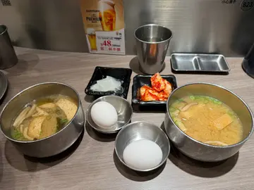 另外有少許Kim Chi 和一隻生蛋。筆者好奇一問:是日本蛋嗎?店員答: 是,可用來撈飯。筆者再問: 蛋是可以生吃?店員答: 可以。每個坐位,枱下拉出自助餐具,欣賞細心位是,除了有餐紙巾外,更放了鹽和黑椒。