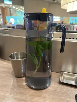 今日上堂前,揾飯食,1:30pm 到來,看著門口的招牌,店員出來介紹,反正都一支公,這店未試過,又再試吓囉⋯⋯午餐定食,漢堡扒係主食,標榜北海道和牛漢堡套餐店名: 一輪,像個車輪,大大個圓圈,外圍坐著,像吧枱一樣,等待㕑子在中央位置煎著漢堡扒,都幾有趣⋯⋯水自斟自飲,對於一個水怪來說,這壼水放著大大支薄荷,幾清新,比清水加多一點點,很方便,一讚。