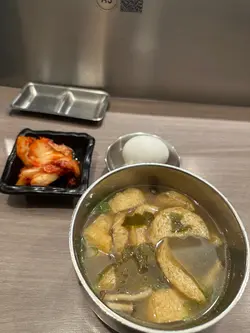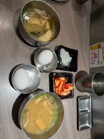 先來一大碗的麵豉熱湯,碗內有海帶及油揚,熱騰騰的到來,