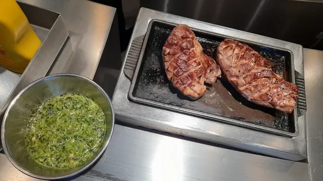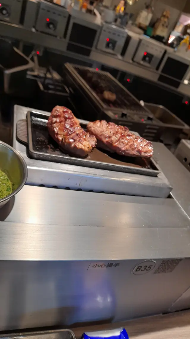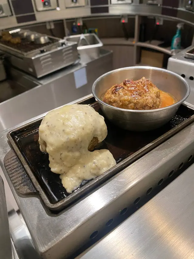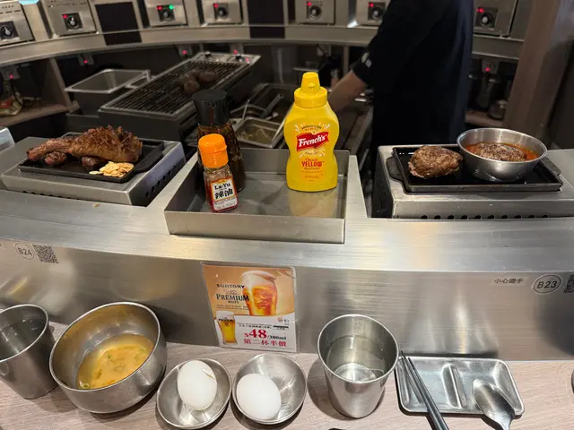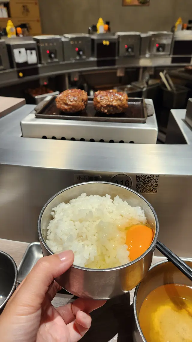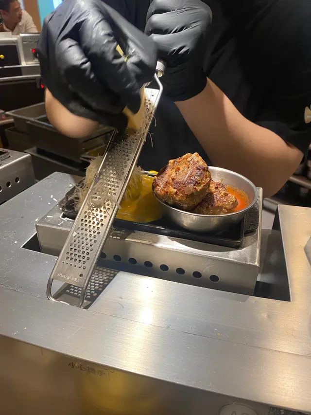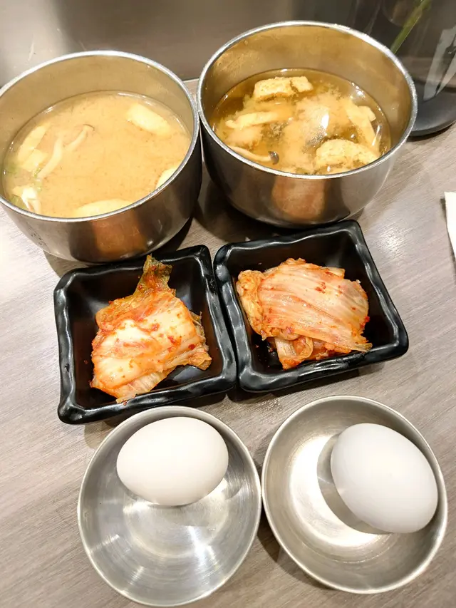 19-10-2025 (Sun)晏晝,同老公去馬莎前食個晏,就嚟上次中秋節,我哋去食点壽司(食評係2025年10月14日提交嘅呢篇:https://www.openrice.com/zh/hongkong/review/%E5%86%87%E4%B8%8B%E6%AC%A1-e6216147)見到嘅呢間,我哋嚟到時冇人等位,店員安排我哋坐一大圓枱嘅最後兩個位坐,佢話下面有鈎可掛袋。安頓完店員就完全冇理我哋,點叫嘢食?答案係每個位面前都有自己座位嘅QR code掃,咁我哋就掃嚟睇menu落單,由於食埋今年最後一個月餅冇耐,所以唔算太餓,就叫個最招牌嘅套餐,再加一樣嘢share食,咁就要咗:7. $28.00嘅木村芥末薑味梳打240ml來貨,冇乜芥末味,有薑味但唔辣,甜甜地。8. $13.00嘅龍井茶都係來貨,清清地似無糖,唔會澀。兩個飲品都唔夠凍。1.-3. 套餐中嘅前菜,日本國產生蛋同麵豉湯麵豉湯幾熱,鹹度啱啱好。3分食吓前菜先,係白蘿蔔同唔知咩菜,口感爽脆,酸甜中帶微辣,OK嘅。5分日本國產生蛋蛋黃好深色,正。4. 套餐中嘅珍珠大米白飯(任添)由於兩個人食 所以我揀正常份量,嚟到係好大碗,口感正常冇問題。3分5. $138.00嘅極上牛舌扒X松果牛舌芯扒套餐,加$8.00要Chill茜醬一份(含有芝士成份)店員燒好後,問我哋擺喺邊塊鐵板,我是但指去我老公嗰邊。首先我哋食極上牛舌扒,佢煎得軟腍,個面係脆,唔太鹹,自己就醮Chill茜醬食,味道溫和唔霸道,牛舌扒本身牛味係有但唔算好濃。5分松果牛舌芯扒相對細件啲,而呢個就乾同韌咗。1分6. 追加$45.00嘅戶呢個煎好就用個兜放上我嗰邊,老公一食就大讚好食,係從未見過佢會讚唔係純牛肉嘅漢堡,佢話好鬆軟又juicy,呢喥可以翻兜。我食落真係佢形容一樣,而當中都有嘅雞軟骨碎,增加口感。5分其他:白飯任添只限一人,如果共食,就要俾多一份套餐錢。抵食係2.7分…查看更多
