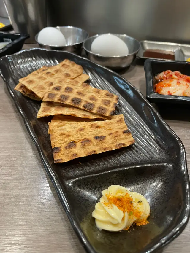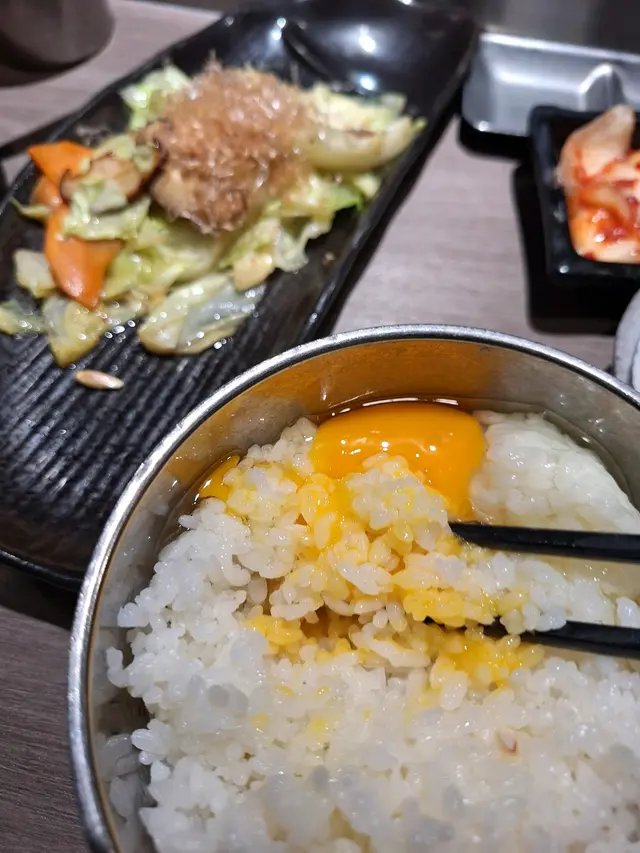 另外有少許Kim Chi 和一隻生蛋。筆者好奇一問:是日本蛋嗎?店員答: 是,可用來撈飯。筆者再問: 蛋是可以生吃?店員答: 可以。每個坐位,枱下拉出自助餐具,欣賞細心位是,除了有餐紙巾外,更放了鹽和黑椒。