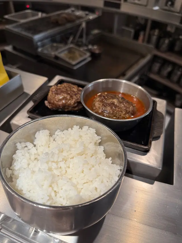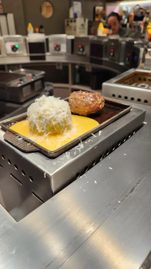 今日上堂前,揾飯食,1:30pm 到來,看著門口的招牌,店員出來介紹,反正都一支公,這店未試過,又再試吓囉⋯⋯午餐定食,漢堡扒係主食,標榜北海道和牛漢堡套餐店名: 一輪,像個車輪,大大個圓圈,外圍坐著,像吧枱一樣,等待㕑子在中央位置煎著漢堡扒,都幾有趣⋯⋯水自斟自飲,對於一個水怪來說,這壼水放著大大支薄荷,幾清新,比清水加多一點點,很方便,一讚。