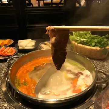 每次經過佢門口都想試,但係突然去食任食火鍋又嫌食太多。今次咁啱天氣凍又肚餓,一於試試佢。內籠裝修保養得宜,一坐底侍應就好好心機介紹套餐,亦冇硬推貴餐,湯底都好好心機由基本湯到增值湯底都介紹,落單都舒服啲。佢任食套餐可以另加雞煲淨食,我哋叫咗最平嘅任食餐同埋雞煲。本身對食物都冇期望,不過上菜就覺得佢哋有心做。芫荽皮蛋湯底料都多嘢食,佢又有鯇魚片任添已經啱晒口味。佢仲有菜同丸任夾,飲品任飲,食物都係好食。最驚喜係啲任點響聆,竟然係即炸、仲要薄身夠味好食。任點嘅牛同羊都唔係殭屍肉,鮮色好味。一路食嗰陣侍應都會望下有冇碟要收,明明剩低我哋一枱客,我哋都加咗兩輪單,佢哋仲有心機不斷問要唔要加湯,唔係hea到我哋走可以快快收工。埋單時又俾啲tips我哋點預訂會最抵食,週圍都生意唔好,員工有心機行多步幾咁難得。寧願幫襯呢啲好過去埋啲網紅茶記被人當豬咁餵啦。…查看更多