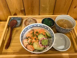 我同朋友最近去大埔搵食,最近食咗「一鳴丼食堂」,位於大埔墟站附近村南道,環境設計得好有日式風情,令人一入去就感受到居酒屋嘅氛圍。我哋叫咗兩個刺身丼定食,真係食得好滿足!🍣我哋叫咗明太子醬燒鮭魚丼定食。三文魚肉質嫩滑,加上明太子醬,味道豐富又好食!🍣 搭配青檸汁🍋🟩、青瓜同蔥粒,將三文魚更加提鮮!另外,我哋叫咗角切魚生丼定食,入面嘅魚生同配料有三文魚、油甘魚、帶子、生蝦、鯛魚、三文魚籽、玉子同青瓜,魚生全部都非常新鮮,點埋豉油同wasabi一齊撈飯食。🍣🦐🐟🥒而兩個定食仲有前菜中華沙律、餐湯麵豉湯,同埋甜品日式蕨餅,真係好滿足!前菜沙律口清新可口,湯底濃郁,蕨餅更加係香滑可口,完美結束一餐。🥗…Read More