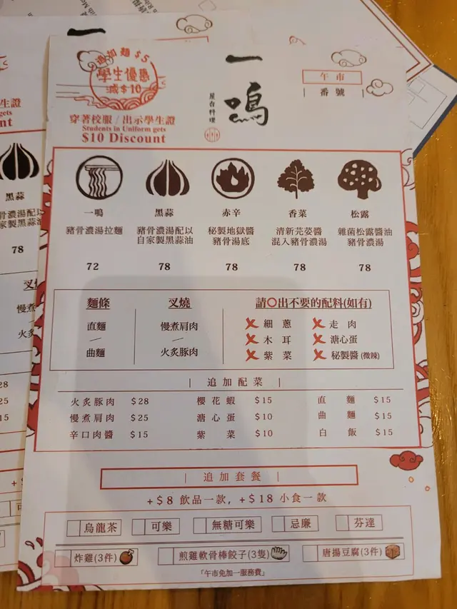 一鳴拉麵 (大埔) 網址: https://s.openrice.com/QrbS0TUy100 地址: 香港大埔運頭街20-26號廣安大廈地下E號舖 電話: +852 63001810