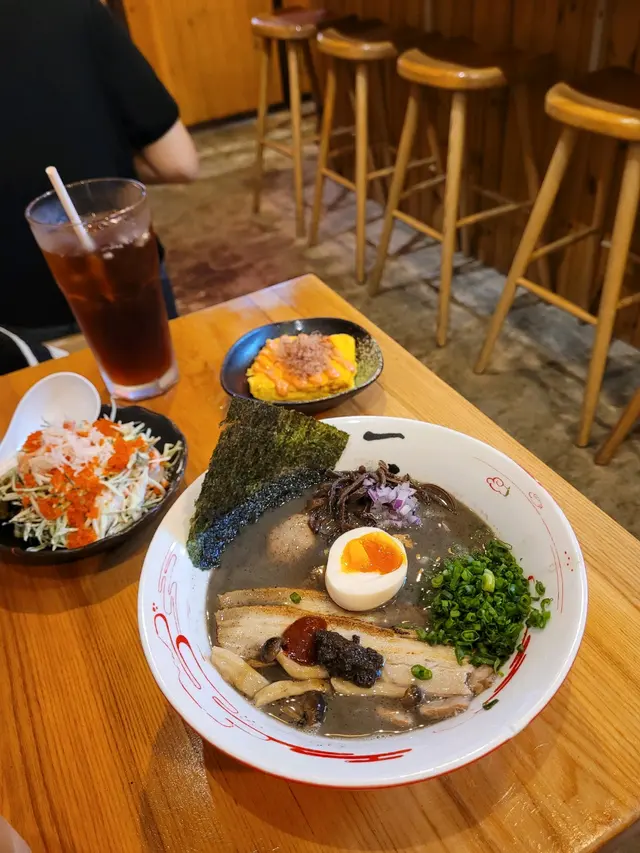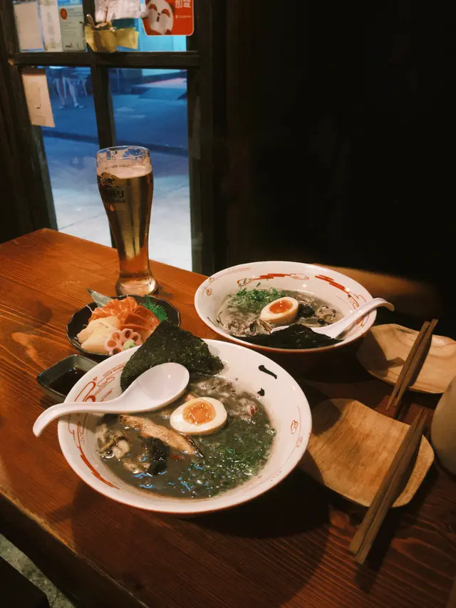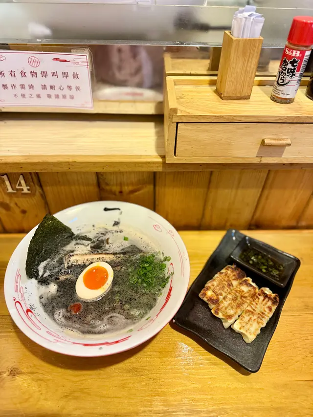 而且舖頭裝修仲好似真係置身日本咁當日選咗黑蒜湯硬面面嘅軟硬度非常好不會過硬亦不會軟非常之吸湯朋友都話喺香港已經好少食到咁濃厚嘅湯底其他小食亦都非常出色軟骨餃子