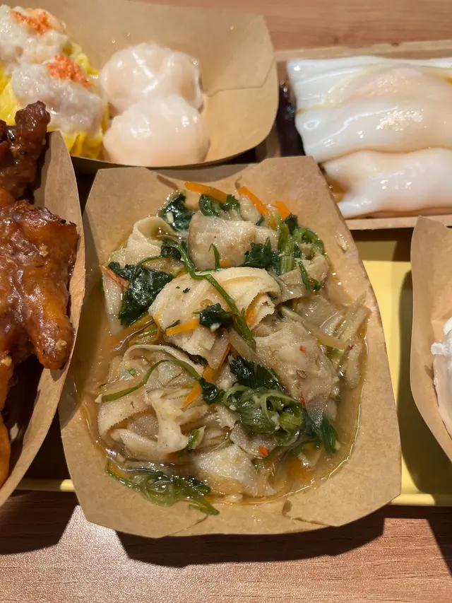 這間點心店由太子登陸中環,同樣其門如市,人龍不绝。店面不算大,座位不多,主要還是提供外賣。牆上有一幅香港風景為主題的壁畫,富香港地道特色,顧客不乏外地遊客。店舖提供正宗傳統手工點心,新鮮現場製造。「叉燒滑腸粉」腸粉爽滑可口,富口感。叉燒饀料份量不少,汁料惹味。「鳳爪排骨飯」大大碗,上面鋪滿排骨及鳳爪。肉排鮮味十足,加上惹味豉汁,份外美味。「鮮蝦腐皮卷」新鮮即炸,脆卜卜,餡料蝦肉鮮味彈牙,外脆內軟,雙重口感。「蜜汁叉燒包」大大個,餡料分量足,叉燒滿滿的,粉皮剛好,不太厚。「蟹皇蒸燒賣」大大件燒賣,上面鋪上蟹籽,好精美,釀有甘香可口的豬肉,是必食之選。「懷舊雞包仔」和叉燒包一樣大大件,餡料多,裏面換上芫荽豬肉餡料,又是另一番風味。「豐料糯米雞」一大隻傳統糯米雞,熱焫焫,一陣陣荷葉清香,有豬肉、雞肉、鹹蛋黃等餡料,非常豐富。「香煎蘿蔔糕」真材實料,每一口都是滿滿清甜蘿蔔絲,軟硬適中。整體而言,這裏的點心件頭比一般酒樓的要大,而且沒有過多味精等調味料,味道新鮮,是吃點心的好選擇。…查看更多