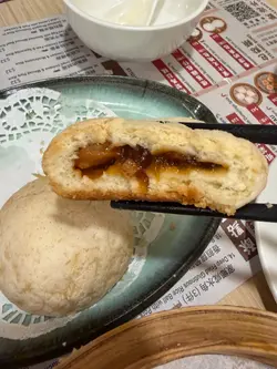 雪山叉燒包熱辣辣,新鮮出爐,外皮脆脆之餘裏面好軟熟,擠滿叉燒的餡料。
