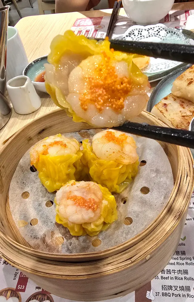 蟹皇蒸燒賣有蟹籽,蝦好大隻,望落好飽滿四嚿大大粒。