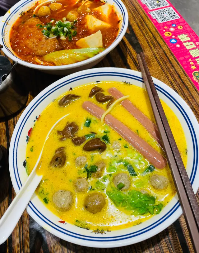 🥤🍜陳皮魚蛋、腸仔拼鹵水大腸油麵