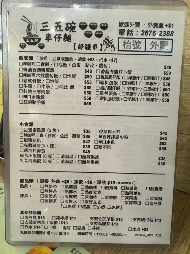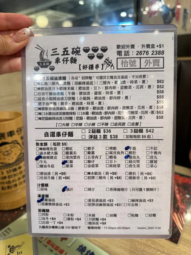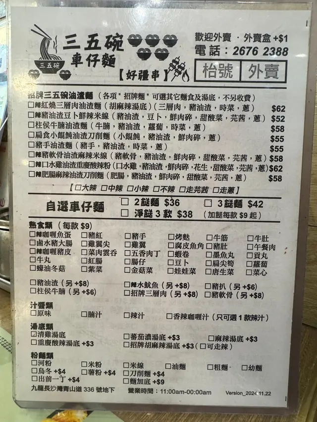 青山道這條道路橫跨荔枝角、長沙灣、深水埗三區,當中藏了不少餐廳。今晚到訪的「三五碗車仔麵 」就是其中之一間