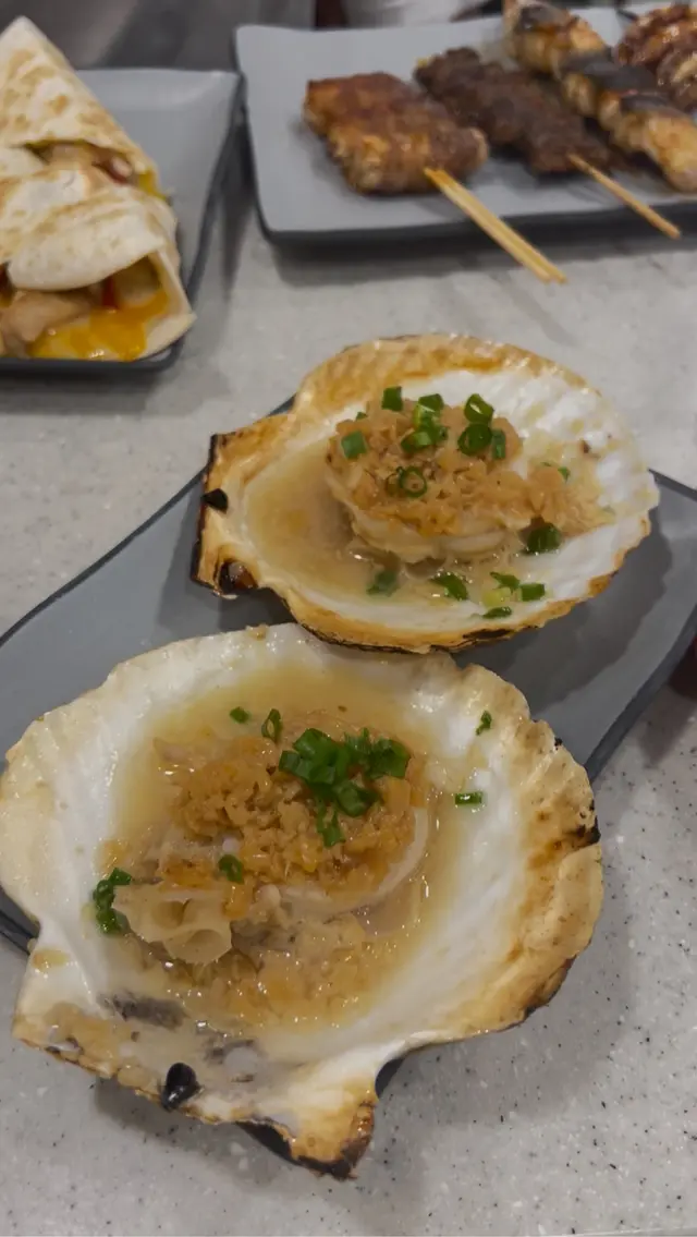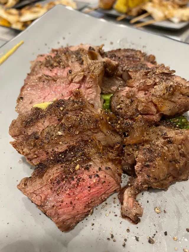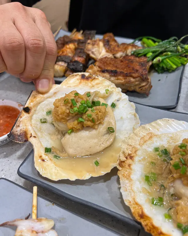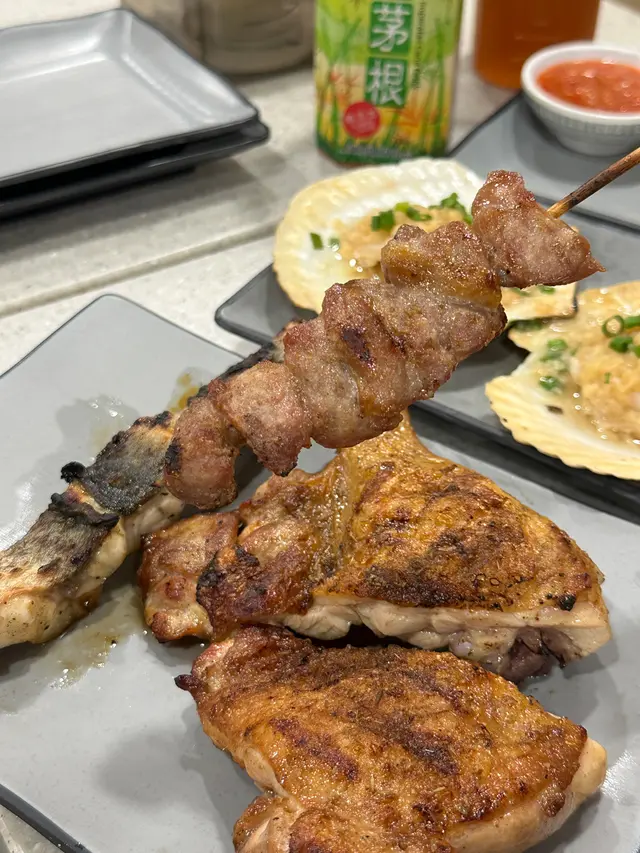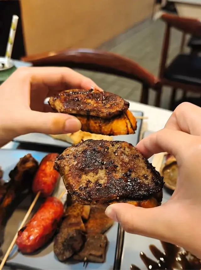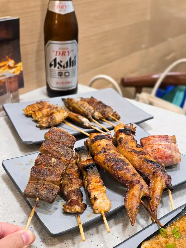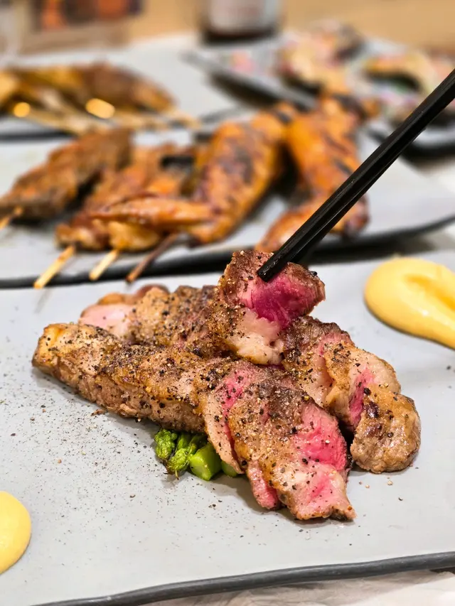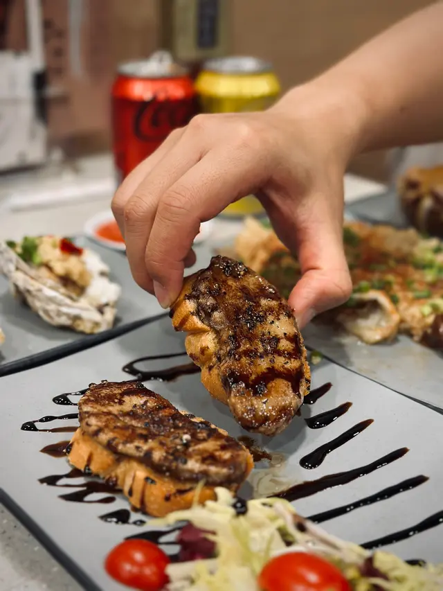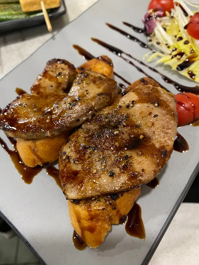 女人街呢間港式串燒店 肉類海鮮串燒小食款式多元 部份更加幾有新意 仲有意粉薄餅主食 保證飽肚 整體質素唔錯 上菜速度都比預期快~ 就算唔夠三人行都唔緊要 當日見唔少都係一人獨樂樂 絕對唔尷尬😇✨️香煎鵝肝多士(2件) $99鵝肝厚切大塊 煎得外脆內嫩 油香入口即化 多士薄脆 爭塊蘋果片中和下邪惡感😈 btw搞到有少少掛住上年Budapest食既鵝肝🥹🥩頂級安格斯牛小排 $128牛小排份量都ok 自選5成熟 有肉香 軟熟唔韌 調味足夠 蘸上芥末咁食 仲有露荀等配菜 成個presentation唔錯🐮鹽燒牛舌 | 安格斯牛肋串 $26肉味正常 肉質算幾軟熟唔韌🐉鹽燒白鱔 $48我食串燒一定會食白鱔 火喉唔錯 燒到外脆內嫩 肉質結實帶爽彈 皮燒出少少魚油香😍🍤牛油開邊大花蝦 $48同樣大隻爽彈啖啖肉 加埋牛油蒜蓉好香口🦪煙肉/蒜蓉燒蠔 $32算大隻肥美juicy 煙肉碎煎得香口惹味🍆蒜蓉燒原條茄子 $38蒜蓉茄子不嬲都無得輸 幾大條厚肉 滿足!🍕黑松露什菇墨西哥薄餅 $46趁熱食外層薄脆 入面夾住芝士菇菌同椒粒 幾香口滿足 帶有淡淡黑松露味 仲做到拉絲效果🍄🟫芝士煙肉大啡菇 $32大啡菇大隻juicy 配料足料 亦都係頭先熟識既味道🍌朱古力香蕉 $18甜品18蚊畫得咁有心機 香蕉唔會烤得太過軟熟 甜甜地配朱古力醬perfect match…查看更多