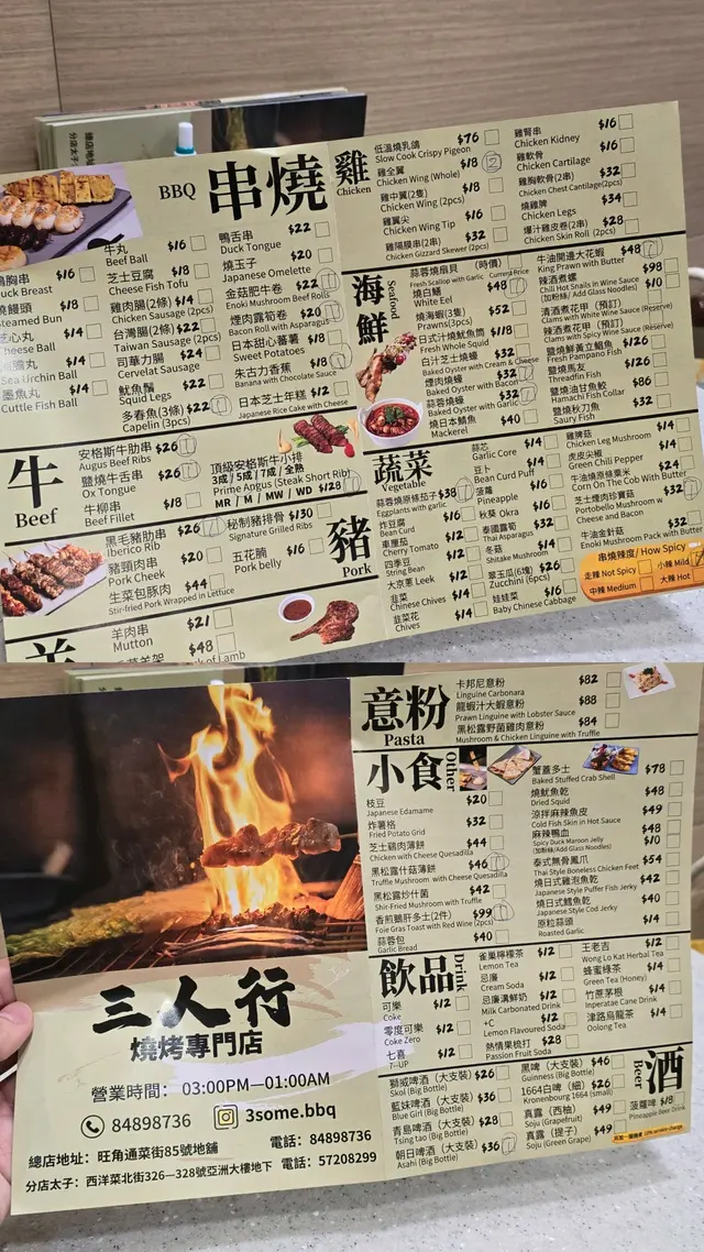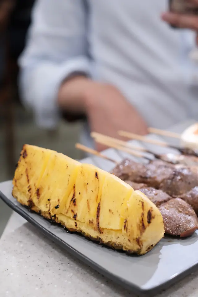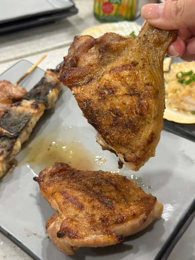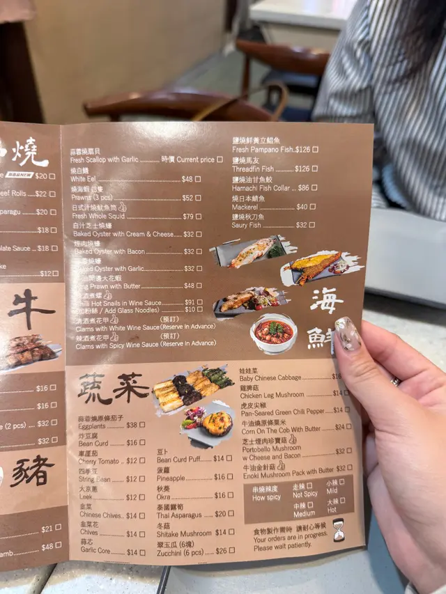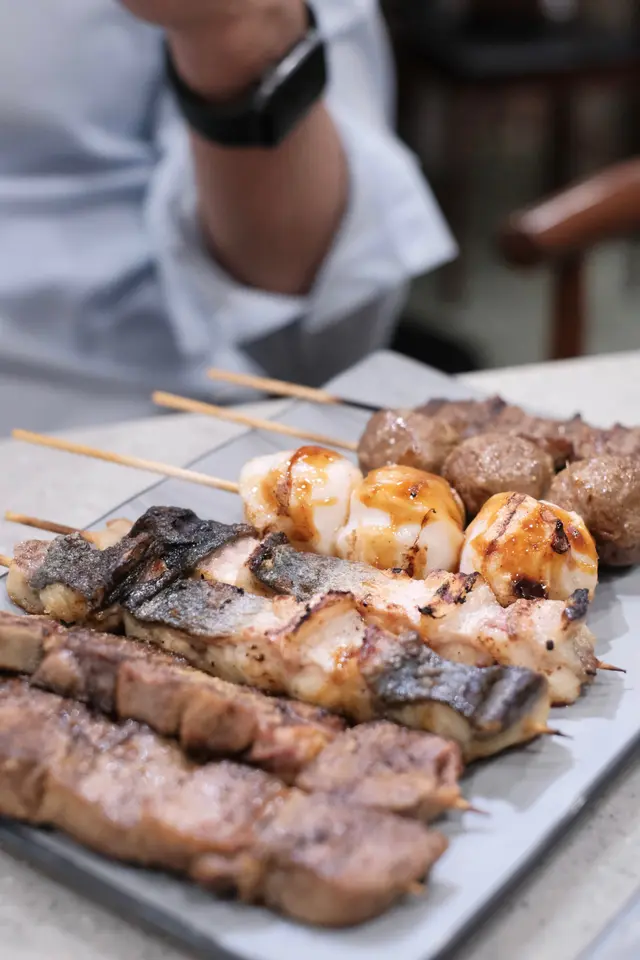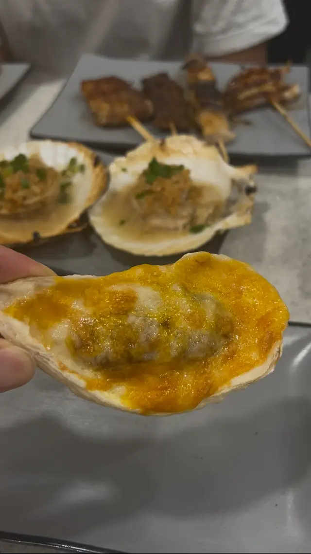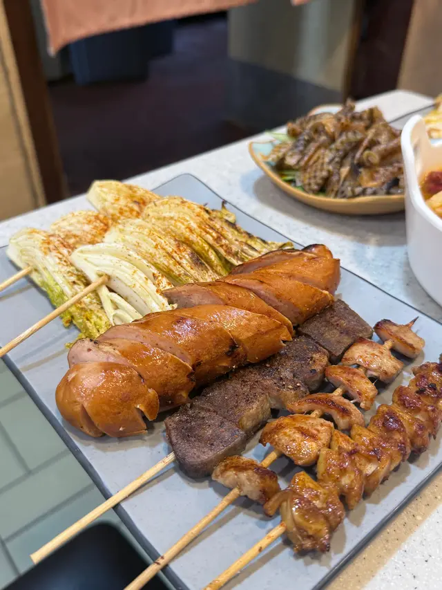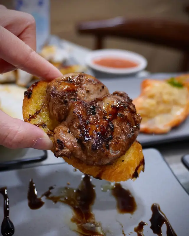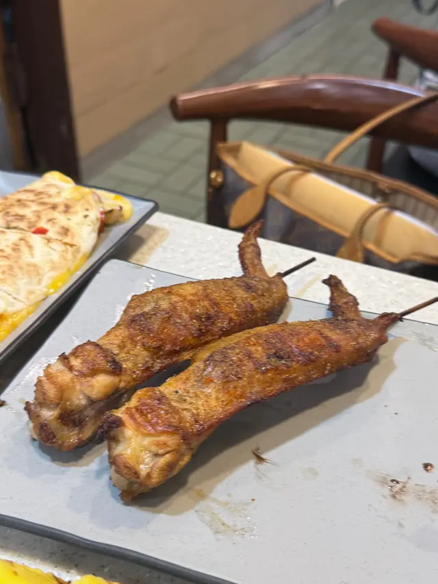 女人街呢間港式串燒店 肉類海鮮串燒小食款式多元 部份更加幾有新意 仲有意粉薄餅主食 保證飽肚 整體質素唔錯 上菜速度都比預期快~ 就算唔夠三人行都唔緊要 當日見唔少都係一人獨樂樂 絕對唔尷尬😇✨️香煎鵝肝多士(2件) $99鵝肝厚切大塊 煎得外脆內嫩 油香入口即化 多士薄脆 爭塊蘋果片中和下邪惡感😈 btw搞到有少少掛住上年Budapest食既鵝肝🥹🥩頂級安格斯牛小排 $128牛小排份量都ok 自選5成熟 有肉香 軟熟唔韌 調味足夠 蘸上芥末咁食 仲有露荀等配菜 成個presentation唔錯🐮鹽燒牛舌 | 安格斯牛肋串 $26肉味正常 肉質算幾軟熟唔韌🐉鹽燒白鱔 $48我食串燒一定會食白鱔 火喉唔錯 燒到外脆內嫩 肉質結實帶爽彈 皮燒出少少魚油香😍🍤牛油開邊大花蝦 $48同樣大隻爽彈啖啖肉 加埋牛油蒜蓉好香口🦪煙肉/蒜蓉燒蠔 $32算大隻肥美juicy 煙肉碎煎得香口惹味🍆蒜蓉燒原條茄子 $38蒜蓉茄子不嬲都無得輸 幾大條厚肉 滿足!🍕黑松露什菇墨西哥薄餅 $46趁熱食外層薄脆 入面夾住芝士菇菌同椒粒 幾香口滿足 帶有淡淡黑松露味 仲做到拉絲效果🍄🟫芝士煙肉大啡菇 $32大啡菇大隻juicy 配料足料 亦都係頭先熟識既味道🍌朱古力香蕉 $18甜品18蚊畫得咁有心機 香蕉唔會烤得太過軟熟 甜甜地配朱古力醬perfect match…查看更多