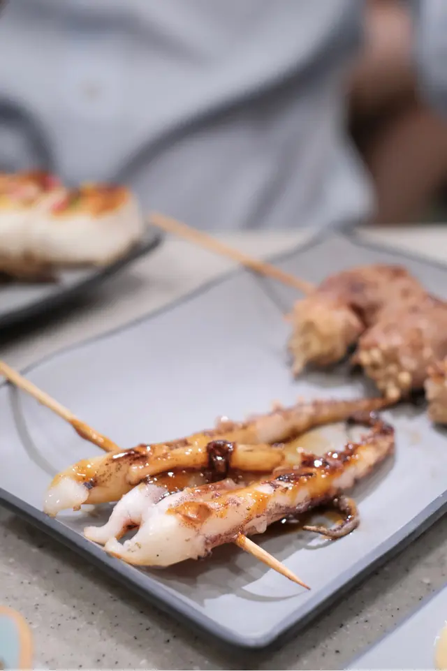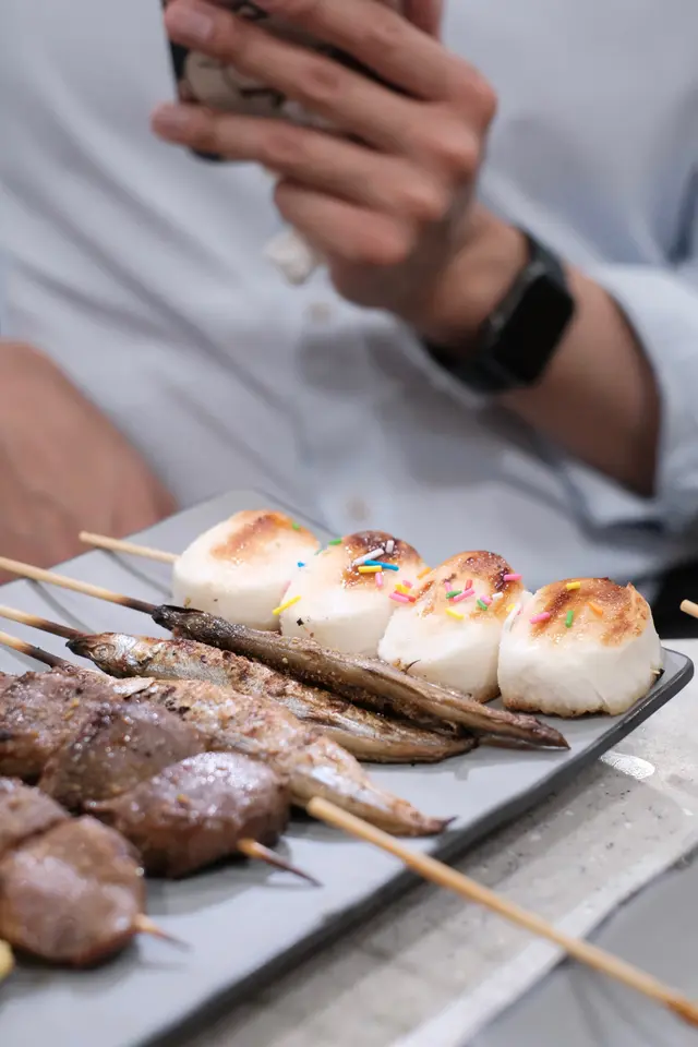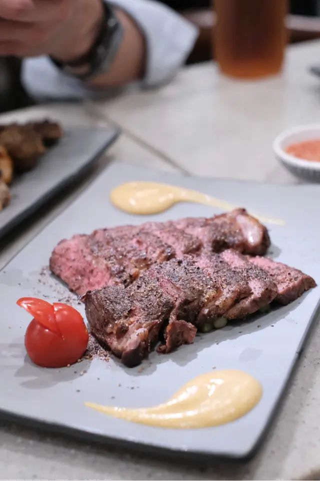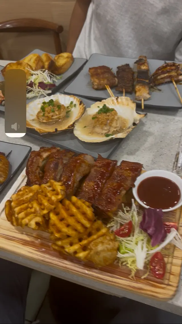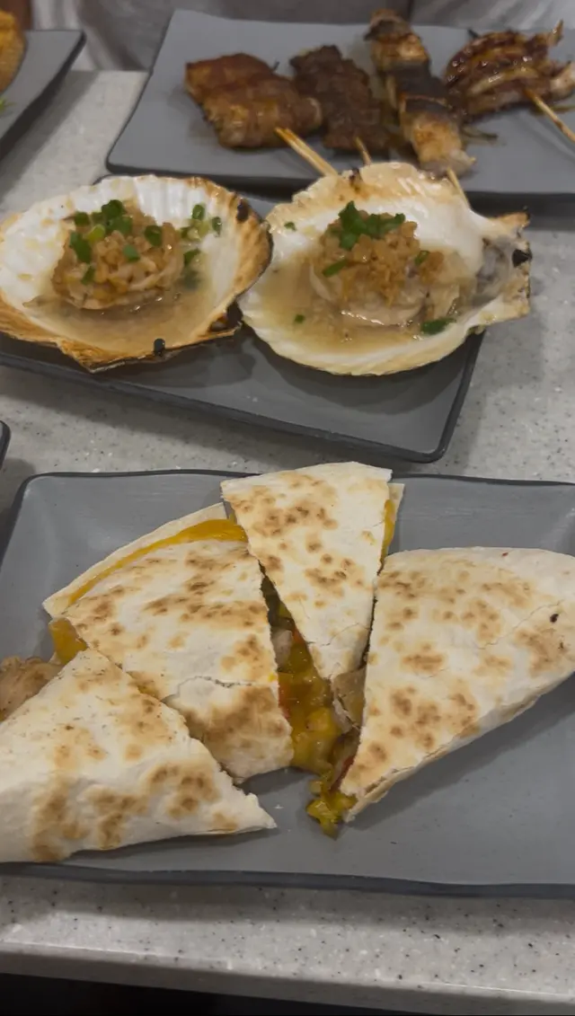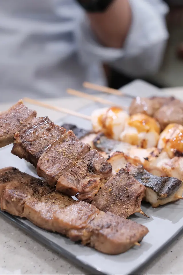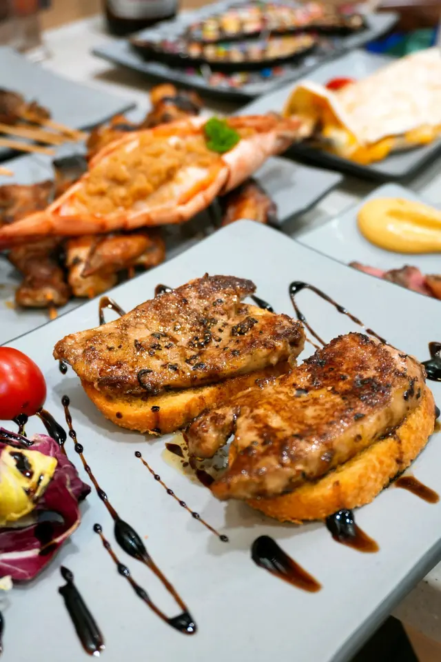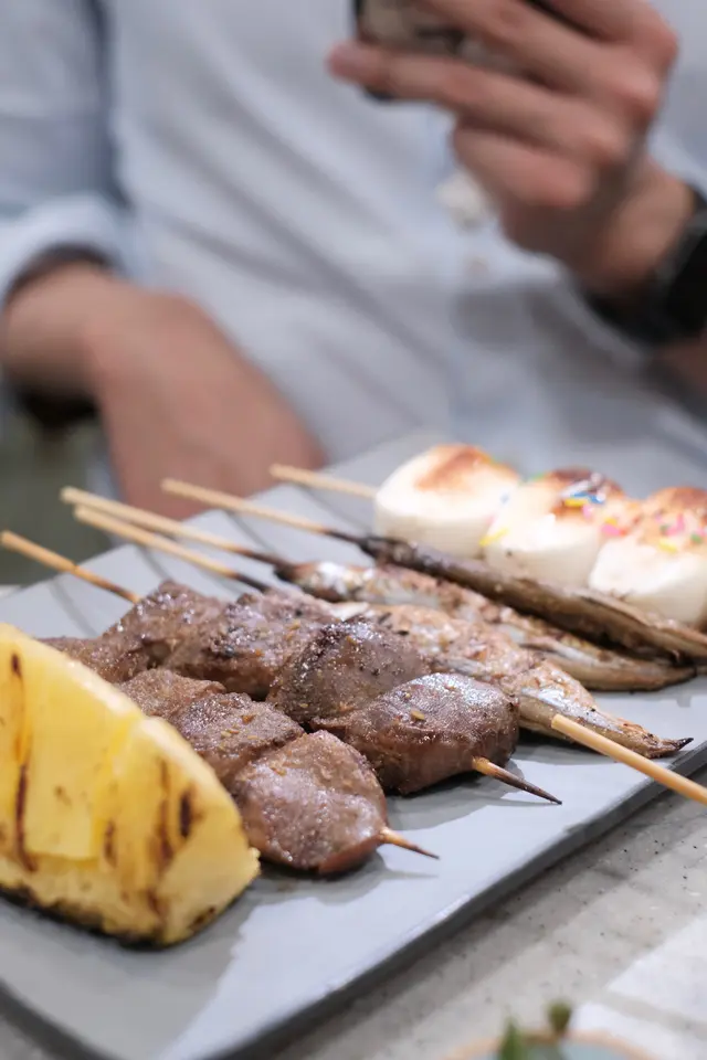 女人街呢間港式串燒店 肉類海鮮串燒小食款式多元 部份更加幾有新意 仲有意粉薄餅主食 保證飽肚 整體質素唔錯 上菜速度都比預期快~ 就算唔夠三人行都唔緊要 當日見唔少都係一人獨樂樂 絕對唔尷尬😇✨️香煎鵝肝多士(2件) $99鵝肝厚切大塊 煎得外脆內嫩 油香入口即化 多士薄脆 爭塊蘋果片中和下邪惡感😈 btw搞到有少少掛住上年Budapest食既鵝肝🥹🥩頂級安格斯牛小排 $128牛小排份量都ok 自選5成熟 有肉香 軟熟唔韌 調味足夠 蘸上芥末咁食 仲有露荀等配菜 成個presentation唔錯🐮鹽燒牛舌 | 安格斯牛肋串 $26肉味正常 肉質算幾軟熟唔韌🐉鹽燒白鱔 $48我食串燒一定會食白鱔 火喉唔錯 燒到外脆內嫩 肉質結實帶爽彈 皮燒出少少魚油香😍🍤牛油開邊大花蝦 $48同樣大隻爽彈啖啖肉 加埋牛油蒜蓉好香口🦪煙肉/蒜蓉燒蠔 $32算大隻肥美juicy 煙肉碎煎得香口惹味🍆蒜蓉燒原條茄子 $38蒜蓉茄子不嬲都無得輸 幾大條厚肉 滿足!🍕黑松露什菇墨西哥薄餅 $46趁熱食外層薄脆 入面夾住芝士菇菌同椒粒 幾香口滿足 帶有淡淡黑松露味 仲做到拉絲效果🍄🟫芝士煙肉大啡菇 $32大啡菇大隻juicy 配料足料 亦都係頭先熟識既味道🍌朱古力香蕉 $18甜品18蚊畫得咁有心機 香蕉唔會烤得太過軟熟 甜甜地配朱古力醬perfect match…查看更多