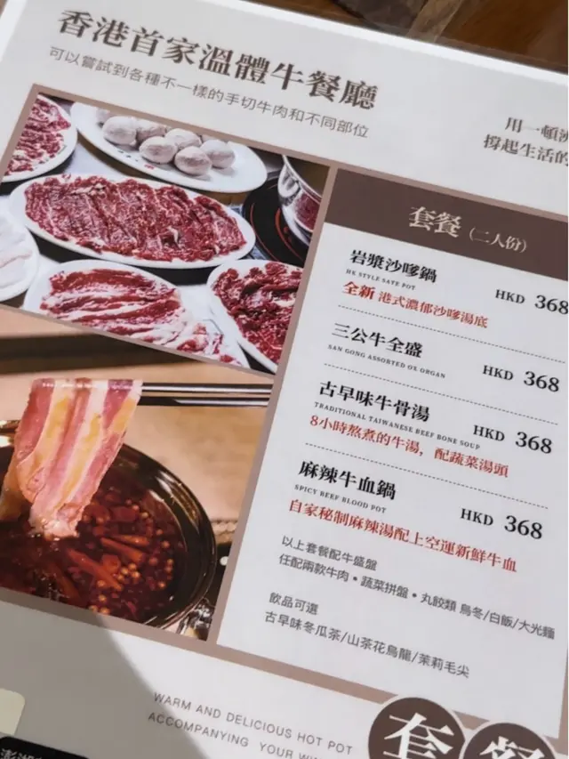 人均唔洗$200任食溫體牛!! FoodBurnerLum等級42024-06-0570 瀏覽 關注 我又去食溫體牛了!!真係值得encore 每日新鮮運到嘅溫體牛 仲新推出左好港式嘅溶岩沙嗲火鍋湯底 台港crossover 平時真係個溶岩湯底都已經$88 但呢度係$368二人餐呀 $184一個人包曬湯底 溫體牛兩款 蔬菜 丸餃 飯麵同飲品 20:30宵夜時段二人餐仲低至$288 一個人$150都唔洗😱😱😱🐂溫體牛溫體牛係可以揀兩個部位 我最喜歡依然係最肥最香嘅牛頸脊 油花最多 鐘意瘦啲嘅話可以叫封門柳/牛菲力等等 其實一盤都幾大 如果細食/想食少啲肉都好夠 但食肉獸們一定要加$33任食溫體牛!加完就要約$200/人 但比我揀都會想食質素高啲嘅溫體牛 多過坊間任食火鍋嘅牛🤓🤓🥟丸餃有墨魚丸同啲台式蛋餃等等 雖然我嘅目標係溫體牛 但丸餃都幾好食嫁 皮薄餡靚 丸就有啲粒粒墨魚口感 唔會得一堆粉漿🤪🍜大光麵呢排最潮嘅港式大光麵 喺呢度麵食到 夾埋沙嗲湯底 馬上由台灣番到香港嘅感覺 順便要大讚個溶岩沙嗲湯底真係好濃 個稠度真係對得住溶岩之名 沙嗲牛麵一齊食極之邪惡🤭🤭🧋飲品咁邪惡一定要去一去膩 套餐本身跟三款茶 我就試左茉莉毛尖 走甜都非常易入口 好香又清新 配上極邪惡沙嗲牛麵係非常平衡😬想再邪惡啲仲可以$18加配特飲芋泥牛乳同埋奶蓋飲品 全部都絕對拍得住坊間台式飲品店 水準之上👻…查看更多+ 4以上食評乃用戶個人意見 , 並不代表OpenRice之觀點。讚好分享人均唔洗$200任食溫體牛!! 三公台灣料理 https://s.openrice.com/QrbT0dEbJ00檢舉 張貼 評分4味道4環境4服務4衛生4抵食用餐途徑堂食