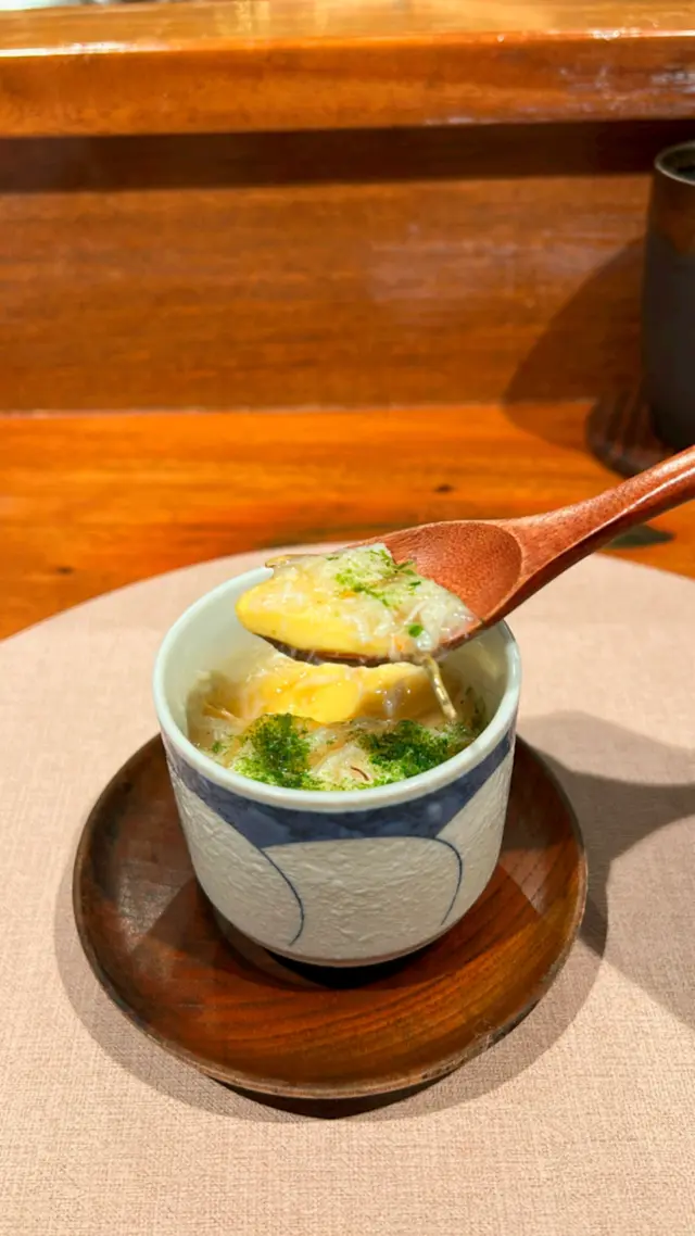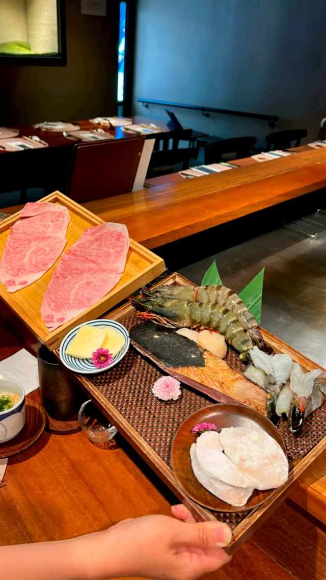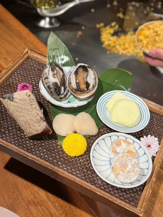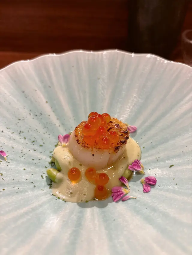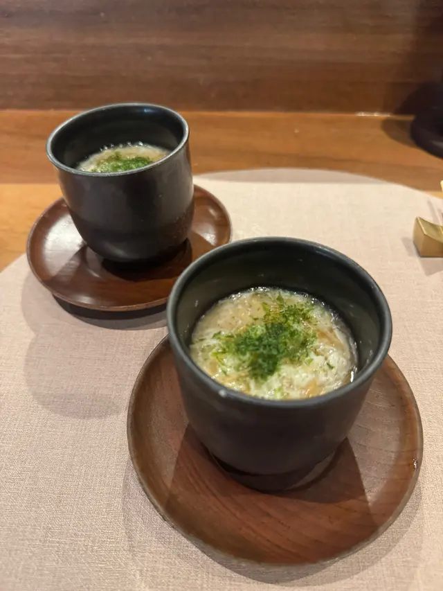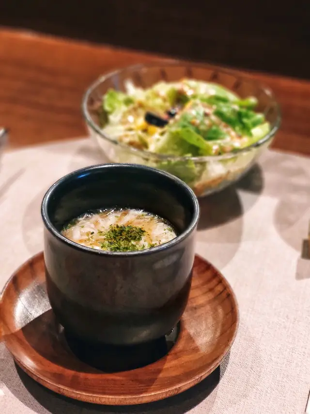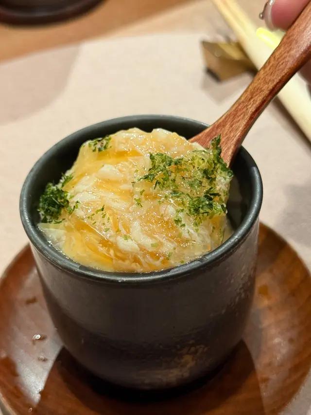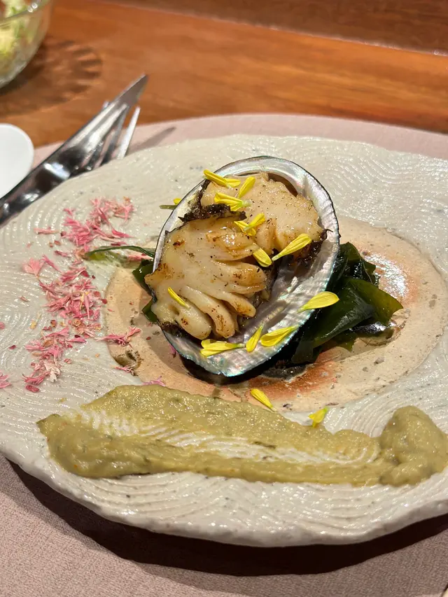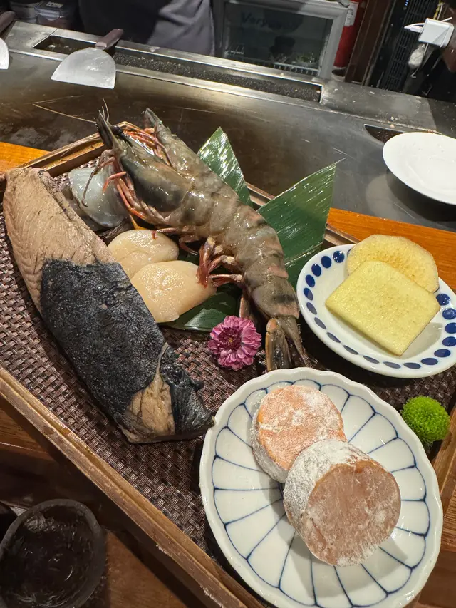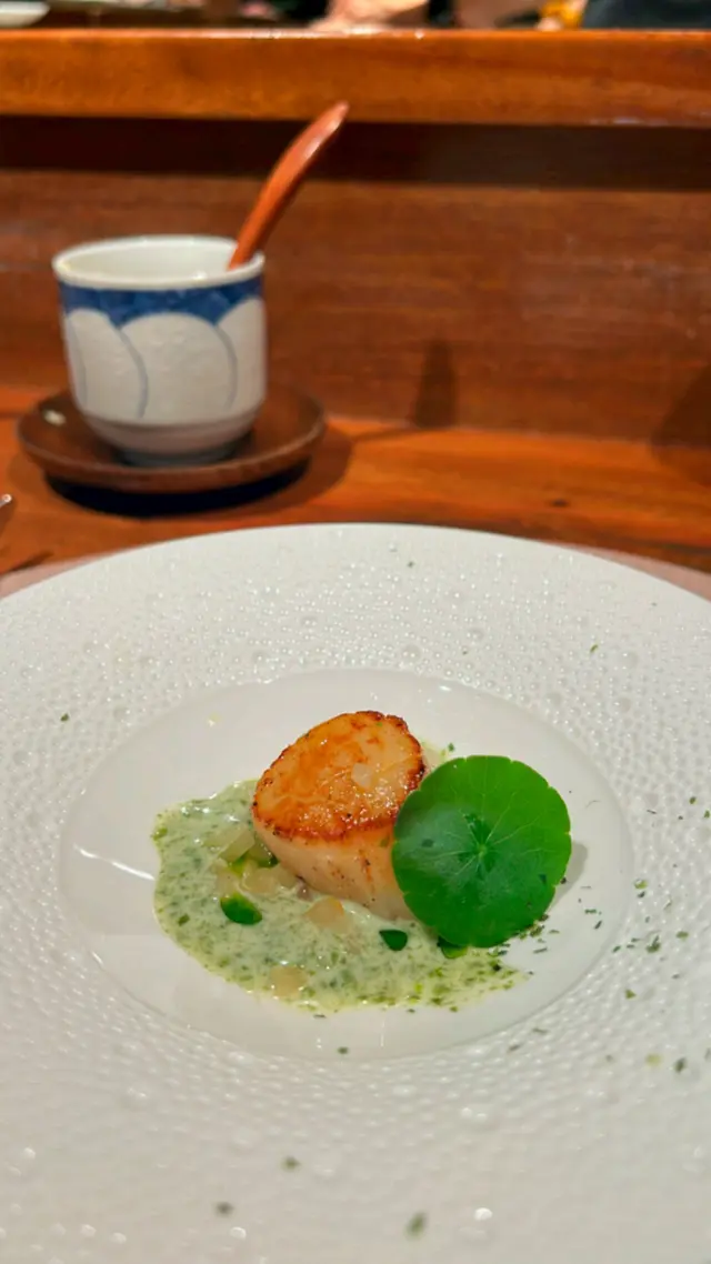 旅行結束返香港,把握放假嘅尾巴,黎北角三分熟鐵板燒。炭火料理,嘆番個味覺嚮宴先同老公午市黎到,一人嗌左個[媄]一人前,$5981️⃣先付一田園野菜沙律三色車厘茄柚子胡麻醬提升酸度,個醬汁真係勁香!2️⃣熱一水野茶碗蒸蟹肉魚翅茶碗蒸啖啖蟹肉鮮味,簡單海苔粉調出味道蛋味香濃,質感幼滑3️⃣荀一北海道帆立貝伴毛豆あん賣相吸引,香氣十足煎香外層,入面保留半生熟口感,火候恰到好處,入口即溶,好味👍🏻順帶要讚搭配的忌廉汁因為加左日本冬瓜莎莎,令帆立貝入口感覺更清爽4️⃣炭 一稻草鰹魚伴黑蒜油醋豆乳醬芝麻、香蔥、紫菜,黑醋味道滲入魚身,令魚味變得更突出油脂感重,留有餘香另外配搭豆乳醬,個人覺得食原味更好5️⃣辰一赤の匠板燒海虎蝦師傳將蝦切成三段,蝦身都幾厚身,好有口感,啖啖肉食得好滋味師傅好細心咁切開蝦頭,蝦頭膏混入蝦肉零舍濃郁💯虎蝦非常新鮮彈牙,地中海海鮮醬,好有層次既帶有濃烈香料味,又有檸檬嘅酸香,微微的辣,十分出色最後食埋海帶去油膩感6️⃣味一創味煎鮟鱇魚肝配焦糖蘋果鮟鱇魚肝煎到兩邊焦脆,食落味道似魚春或吞拿魚扒,肉質粉嫩,完全唔腥焦糖蘋果同埋山椒醬汁甜感皆重而且食完之後,口腔仲感覺到魚肝的漿口餘韻😆幾特別7️⃣主一蒜香薄燒和牛 & 京一野菜三品主食除咗牛肉之外仲可以選豚肉或地雞薄燒和牛我哋叫咗五成熟,剛剛好!配嘅黑松露黑醋醬真係超香口,蘸牛肉同蔬菜都好好食另外又有藤椒醬,增添中式嘅麻辣口感,鍾意食辣嘅朋友可以試吓燒野菜有日本南瓜、啡菇同翠玉瓜配埋茄子Mousse醬口感舒服8️⃣样一菊志炒飯鐵板燒炒飯炒到粒粒金香,伴有櫻花蝦嘅鹹香味,飽肚又好食附有紅酒蕎頭可以撈嚟食9️⃣吸物一高野吸物係暖肚又足料嘅味噌湯!🔟甘味一洋果子豆腐雪糕上仲有芋頭脆片口感多層次之餘為呢餐劃上完美句號…查看更多