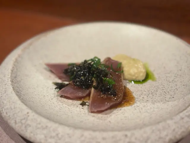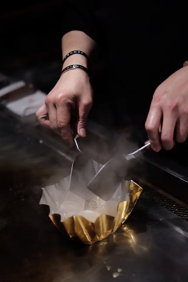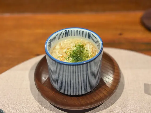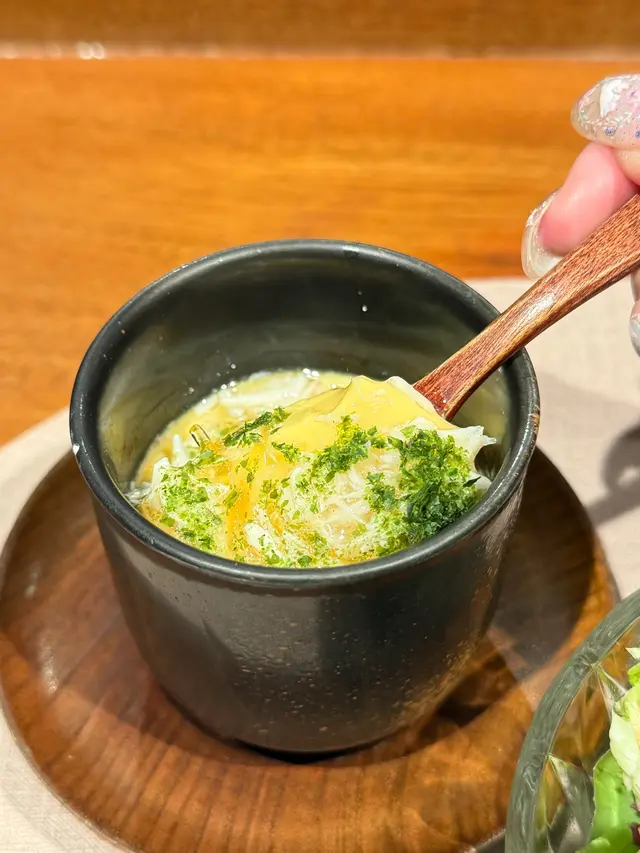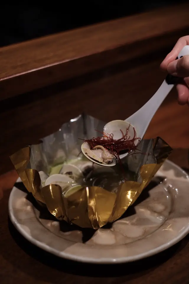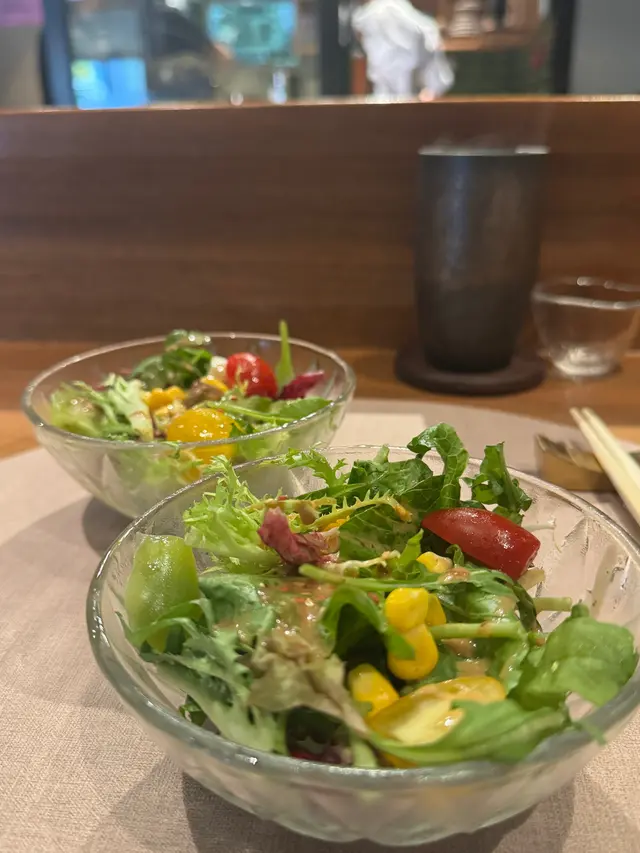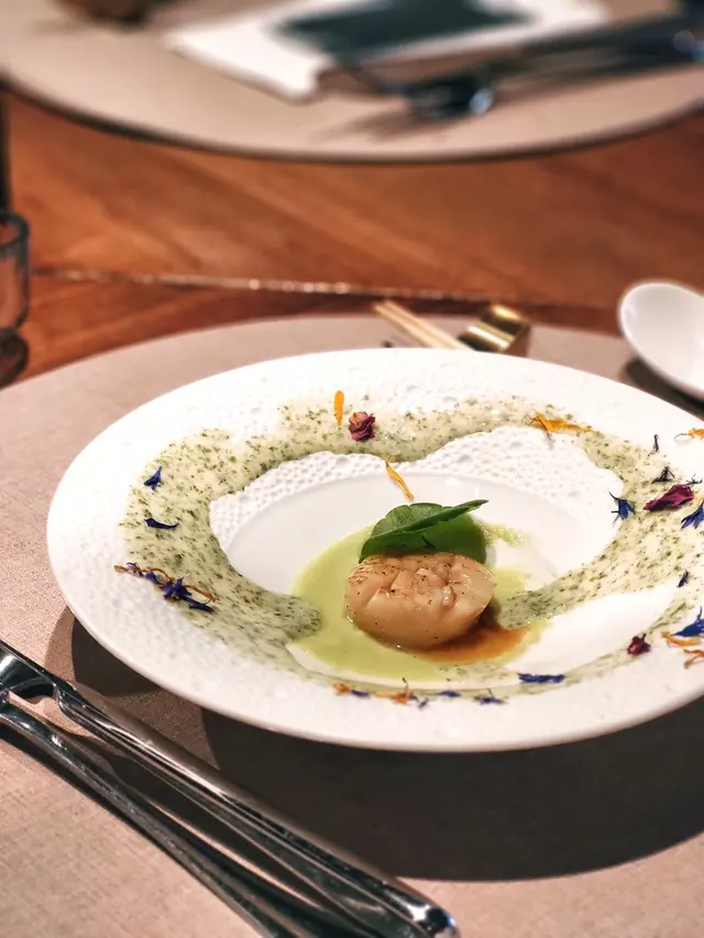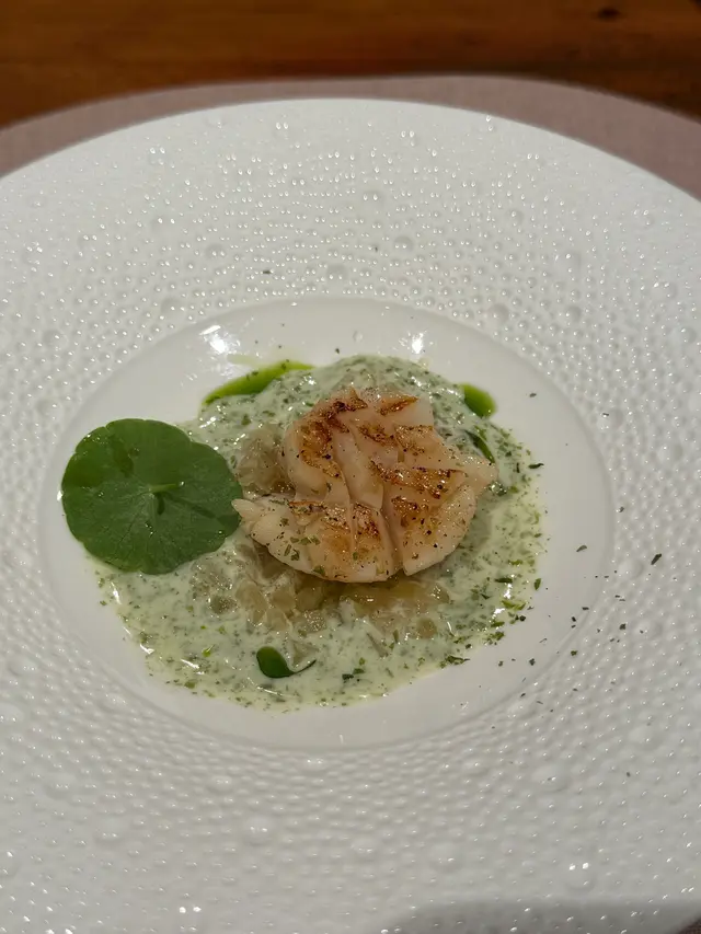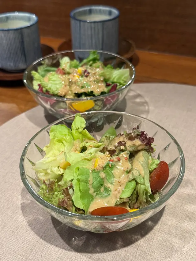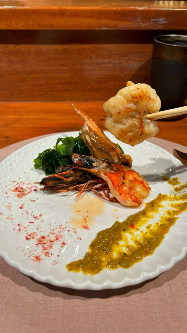 旅行結束返香港,把握放假嘅尾巴,黎北角三分熟鐵板燒。炭火料理,嘆番個味覺嚮宴先同老公午市黎到,一人嗌左個[媄]一人前,$5981️⃣先付一田園野菜沙律三色車厘茄柚子胡麻醬提升酸度,個醬汁真係勁香!2️⃣熱一水野茶碗蒸蟹肉魚翅茶碗蒸啖啖蟹肉鮮味,簡單海苔粉調出味道蛋味香濃,質感幼滑3️⃣荀一北海道帆立貝伴毛豆あん賣相吸引,香氣十足煎香外層,入面保留半生熟口感,火候恰到好處,入口即溶,好味👍🏻順帶要讚搭配的忌廉汁因為加左日本冬瓜莎莎,令帆立貝入口感覺更清爽4️⃣炭 一稻草鰹魚伴黑蒜油醋豆乳醬芝麻、香蔥、紫菜,黑醋味道滲入魚身,令魚味變得更突出油脂感重,留有餘香另外配搭豆乳醬,個人覺得食原味更好5️⃣辰一赤の匠板燒海虎蝦師傳將蝦切成三段,蝦身都幾厚身,好有口感,啖啖肉食得好滋味師傅好細心咁切開蝦頭,蝦頭膏混入蝦肉零舍濃郁💯虎蝦非常新鮮彈牙,地中海海鮮醬,好有層次既帶有濃烈香料味,又有檸檬嘅酸香,微微的辣,十分出色最後食埋海帶去油膩感6️⃣味一創味煎鮟鱇魚肝配焦糖蘋果鮟鱇魚肝煎到兩邊焦脆,食落味道似魚春或吞拿魚扒,肉質粉嫩,完全唔腥焦糖蘋果同埋山椒醬汁甜感皆重而且食完之後,口腔仲感覺到魚肝的漿口餘韻😆幾特別7️⃣主一蒜香薄燒和牛 & 京一野菜三品主食除咗牛肉之外仲可以選豚肉或地雞薄燒和牛我哋叫咗五成熟,剛剛好!配嘅黑松露黑醋醬真係超香口,蘸牛肉同蔬菜都好好食另外又有藤椒醬,增添中式嘅麻辣口感,鍾意食辣嘅朋友可以試吓燒野菜有日本南瓜、啡菇同翠玉瓜配埋茄子Mousse醬口感舒服8️⃣样一菊志炒飯鐵板燒炒飯炒到粒粒金香,伴有櫻花蝦嘅鹹香味,飽肚又好食附有紅酒蕎頭可以撈嚟食9️⃣吸物一高野吸物係暖肚又足料嘅味噌湯!🔟甘味一洋果子豆腐雪糕上仲有芋頭脆片口感多層次之餘為呢餐劃上完美句號…查看更多