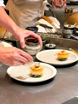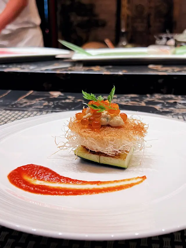 這間高級日本餐廳位於銅鑼灣Cubus,主打融入現代和食理念的傳統鐵板燒,由日籍主廚主理,嚴選日本直送及當造季節的海鮮食材,更獲選2025年米芝蓮指南入選餐廳。店內環境寬敞舒適,裝潢融合古典及現代元素,以廚師吧枱為主,能欣賞師傅的手藝。割烹鐵板燒午餐 - $480/位日式沙律新鮮翠綠的沙律菜,有香甜多汁的粟米及車厘茄,淋上自家製芒果醬。茶碗蒸採用鐵板蒸煮好特別,熱呼呼的日式蒸蛋加入高湯特別滑溜鮮美,有鮮甜的蟹肉及爽脆的蟹籽,又有香菇及銀杏果等,鮮味十足。北海道帆立貝肥美飽滿的鮮帶子細嫩柔軟,有純淨的鮮甜味,外層有金黃香脆的日本白粟米鬚包裹著,又有爽口的翠玉瓜及三文魚籽,加上他他醬及日式蕃茄醬,層次感極為豐富。鐵板銀鱈魚魚肉和魚皮分開烹調,雪白肉厚的魚肉結實細膩有咬口,魚皮則煎至如薯片般酥脆,清爽甘香的茄子平衡膩感,佐以自家製紫菜牛油汁及麵豉汁。A4宮崎和牛壽喜燒薄燒油花分佈豐富且平均,薄燒至五成熟恰到好處,外皮焦香而內裡保持粉嫩,鹹甜交織的壽喜燒醬汁好入味,可蘸上日本生蛋黃增添順滑感,還有京蔥、蔬菜、豆腐和冬菇等平衡膩感。鐵板蒜香炒飯圓潤飽滿的米飯粒粒分明充滿鑊氣,米香味好濃郁,染上濃稠的雞蛋及醬油,還有洋蔥及紅蘿蔔粒等平衡膩感。赤麵豉湯赤味噌風味濃厚,甘香鮮味。漬物酸酸甜甜好開胃。自家製GELATO濃郁紮實的意大利雪糕綿密絲滑,奶香味好濃郁,焦糖醬香濃而不膩。…查看更多