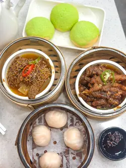 太子附近有間幾唔錯嘅點心店,提供多元化即叫即蒸點心,還有多款中式小菜,食物水準好好。蝦餃皮薄晶瑩而軟,蝦肉爽口彈牙,還加入鮮嫩脆甜的春筍,口感豐富。鳳爪肉質軟腍香口,豉汁味夠濃郁,是不少港人飲茶必叫的點心之一。金錢肚滿滿黑椒香氣,鮮爽彈牙,少少微辣夠惹味。咸水角炸得酥脆金黃,外脆內軟,鹹中帶甜,餡料有豬肉碎、蝦米、冬菇,非常足料。綿花雞的鮮嫩多汁,雞肉吸滿濃郁湯汁後變得滑嫩、魚肚軟糯,口感非常鬆化。綠色的斑蘭雪山叉燒包好特別,咬落鬆軟,有陣陣斑蘭香氣,叉燒肥瘦適中,滿滿蜜汁味。豉汁排骨飯鮮美嫩滑,帶有濃郁蒜蓉豆豉醬香,飯粒分明,口感軟糯,上枱聞到香噴噴。查看更多