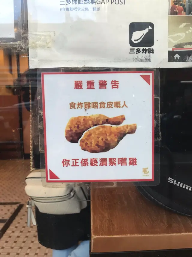 因為男朋友很愛吃炸雞,第一天來香港時因為太晚沒吃到,機場出來都快12點了,只好隔天再去.雖然有朋友覺的三多的炸雞脾(腿)🍗太乾,可是我覺得應該是一家家的分店問題(?).我蠻喜歡這家的外皮比較脆,然後也比較濃味...(而且可以加辣🌶)😂😂.🐔雞軟骨會加很多炸蒜跟洋蔥,也可以自己加辣粉,半辣半不辣,各自吃自己的份兒~.唯一希望店家如果客人內用時可以改用比較環保的來盛菜,紙碟什麼的也可以,怎也比發泡膠盒來的好....查看更多