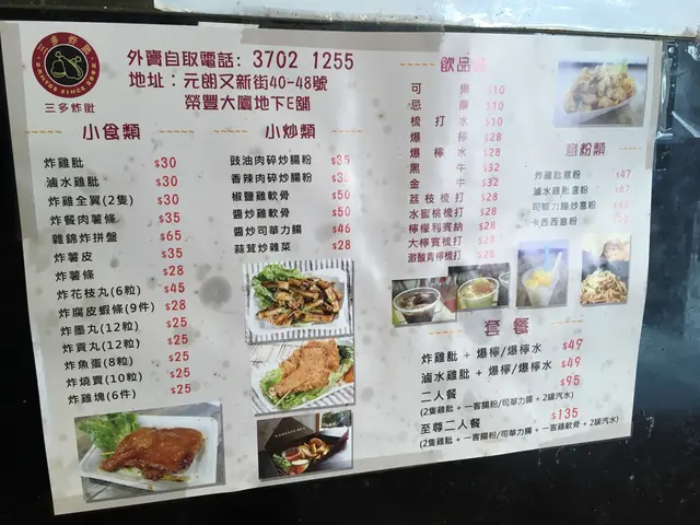 大埔三多炸雞脾🍗一直都係人氣米豬蓮👍🏻本身都係三多fans😂❤️❤️❤️原來佢開到尼元朗yoho mall即刻試試元朗三多水準先首先雞脾🍗好似無大埔甘大隻🤔辣粉好似吾同左,大埔係倒係表面但元朗無得只叫炸脾大埔一隻炸脾廿幾蚊可以單叫元朗店要套餐入面有炸脾+薯條🍟+可樂一杯炸脾水準good,一樣皮鬆脆內軟又juice 重點三多炸雞🍗脾個皮炸得好鬆5會成口粉又5會炸到好硬真係精髓係炸雞🍗脾皮😂😂😂好邪惡既美食😋😋😋薯條好咸😞5好食可樂一般可樂如果大家無食過三多炸雞🍗脾可以試但建議可以去老店大埔店叫單隻炸雞🍗脾就得😚😚😚但yoho mall 三多環境係舒服過大埔大埔地點無甘靚係街鋪夜晚要坐係路邊食🙈🙈🙈d枱放馬路邊食港式港味🤪🤪🤪————————————————滿分5🔆🏝環境🔆🔆🔆🔆🔆🛋服務🔆🔆🔆🔆💲價錢🔆🔆😋食物質素🔆🔆🔆🔆💥翻兜指數🔆🔆🔆🔆————————————————📍餐廳名稱:三多📍地點:yoho mall查看更多