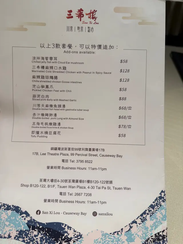 三希樓 (荃灣廣場) (荃灣) 網上訂座享低至8折優惠兼賺Rice Dollars 網址: https://s.openrice.com/QrbS0Dx4C00 地址: 香港荃灣大壩街4-30號荃灣廣場B1樓120-122號舖 電話: +852 26677208