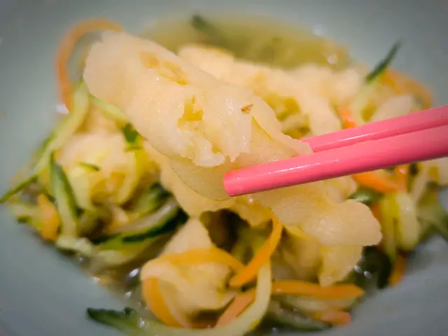今日突然間好想食紫菜四寶河🤣所以就去左三才魚旦粉麵的港式粉麵店食lunch ~店舖主打手打魚蛋、魚片及各類魚旦粉麵。店內以真材實料和家族經營的堅持聞名好有新切感,價錢又十分親民😜店鋪空間寬敞整潔,適合堂食,且價錢平實親民。招牌有魚旦魚片河粉、紫菜四寶河粉(含魚旦、豬肉丸、魚皮餃及貢丸),還有墨魚蝦條、炸魚皮等特色配菜。辣椒油特別用指天椒及炸蒜蓉製作,香辣醒胃👍🏻加埋醋一齊食,簡直係絕配😋 魚旦軟腍且有魚味,湯底清淡不搶魚旦和魚片的鮮味。炸蒜用油炸成金黃色酥脆的蒜蓉,帶有濃郁的蒜香和香脆口感。真係可以讓你食到停唔到口😌…查看更多