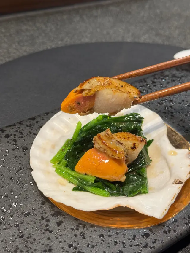 📍三日月今次嚟到呢間日式席前鐵板燒餐廳食飯,環境寬敞舒適,裝修精緻,新派和風嘅設計帶嚟型格嘅氣息~之前都有黎過,今次過黎Me Time 一下🥰🌟豐 • 一人前鐵板餐 $398 ✨優惠價✨🔶前菜三小點分別有煙燻雞肉、味噌茄子同帶子裙邊~煙燻雞肉最有驚喜,肉質有彈性;帶子裙邊口感彈牙🔶木瓜柚子沙律木瓜柚子沙律好清新,爽脆清甜,加埋啲微酸醬汁,開胃又唔膩🔶大虎蝦原隻拆散放喺鐵板上燒,蝦頭同蝦鬚會壓成一片,薄到成塊薯片咁,蝦鬚食落會比較脆口;而蝦肉亦都好彈牙,配埋羅勒香草汁同香濃嘅蟹膏醬汁一齊食,好鮮味!🔶 鮮活蘇格蘭聖子皇蟶子用鐵板燒至香氣撲鼻!肉身爽脆彈牙,牛油同蒜蓉嘅香味完全逼咗入去,夠鑊氣,鮮味十足!🔶 茶碗蒸蛋嘢質地滑捋捋,蛋香味重,用咗日本產地嘅蛋~同平時食到嘅味道好唔同🙈同時加入咗魚子、魚湯同木耳絲,增添唔少口感🔶 美國Prime 肉眼薄燒卷配鐵板炒雜菜肉眼嘅脂肪比例會好平均,唔會有多餘嘅脂肪~肉質鬆軟,食落牛味濃郁!中間夾住金針菇同香蔥,層次感十足!配埋鐵板炒雜菜,爽脆清新,中和油膩感~🔶 鐵板炒飯鐵板炒飯,上枱滋滋聲,香氣撲鼻!飯炒到粒粒分明,乾爽有嚼口,雞蛋香蔥均勻包裹,簡單但鑊氣十足🔶 豆乳味噌湯食到尾聲飲返一碗熱湯會比較解膩,有海帶同豆皮,味道正正常常🔶甜品當晚嘅甜品係抹茶大福🍵抹茶味重濃,唔太甜,幾好!⭐️好味指數: 8/10📍 三日月 (尖沙咀)尖沙咀金馬倫道23號金馬倫廣場2樓B號舖…查看更多