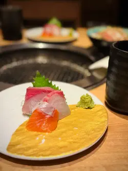位於尖東中心地帶一座高級商業大廈既地下裝修以日系風格 多以木為主題座位闊落唔逼夾,燈光柔和幾舒服抽風系統做得唔錯,食完燒肉都唔會成身油煙味今次簡左中間價位既燒肉套餐貪佢咩都包晒 乜都可以試吓慢煮鴨胸沙律 -鴨胸夠嫩唔柴,皮脆肉香,沙律菜新鮮爽脆醬汁酸甜開胃,份量適中,做前菜啱啱好季節刺身拼盘 -三文魚肥美夠油香,鯛魚爽口清甜嚴選黒毛和牛二種 -三筋肉油花均勻,燒完入口即溶,牛味超濃和尚頭肉質軟嫩得嚟帶少少咬口,油脂香而不膩兩款都係高質和牛,建議唔好燒太熟,五成熟就最正!配埋佢哋自家製醬汁或者少少鹽已經好夠味濕式熟成和牛一種類 -肉質軟淋得嚟牛味濃郁,咬落去仲有肉汁爆出嚟燒到五成熟就最perfect雞橫膈膜 肉質爽脆得嚟帶少少嚼勁,燒到微焦嘅邊位最正配埋檸檬汁或者七味粉簡直一流平時好少見呢個部位,值得試吓!不過要掌握好火候,過火會韌啲㗎蒜片香蔥和牛薄燒 -和牛薄切夠晒嫩滑,蒜片炸到金黃脆口夾埋香蔥一齊食超惹味 建議包住飯食,啖啖牛油香,邪惡但滿足!海膽和牛煲仔飯 -一上枱就聞到勁香煲仔飯焦香面頭鋪滿鮮甜嘅海膽同油潤嘅和牛片仲有蛋黃撈埋一齊食,口感creamy到不得了! 和牛片嫩滑得嚟牛味濃,海膽新鮮冇腥味飯底吸晒牛油同海膽精華,仲有啲飯焦脆卜卜要趁熱食,凍咗會膩少少牛蒡黑豚肉味噌湯 -湯底濃郁唔死鹹,豚肉片嫩滑仲有咬口牛蒡絲爽脆帶甜,飲完成身暖粒粒最驚喜係份量足料,唔似其他店得兩片豚肉咁孤寒食完燒肉飲返碗,perfect池!…查看更多