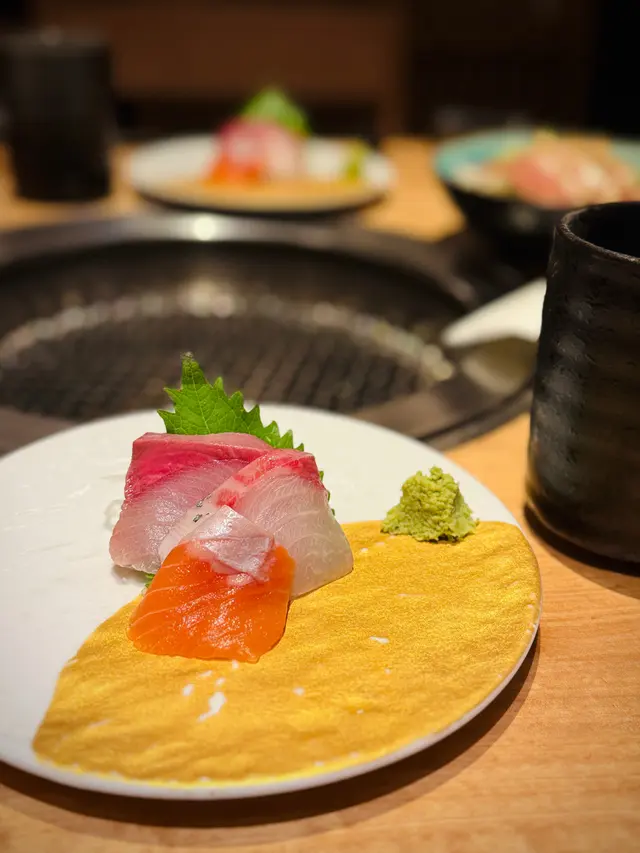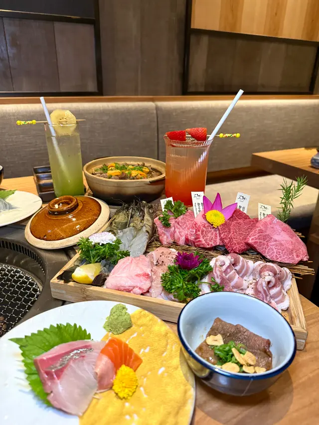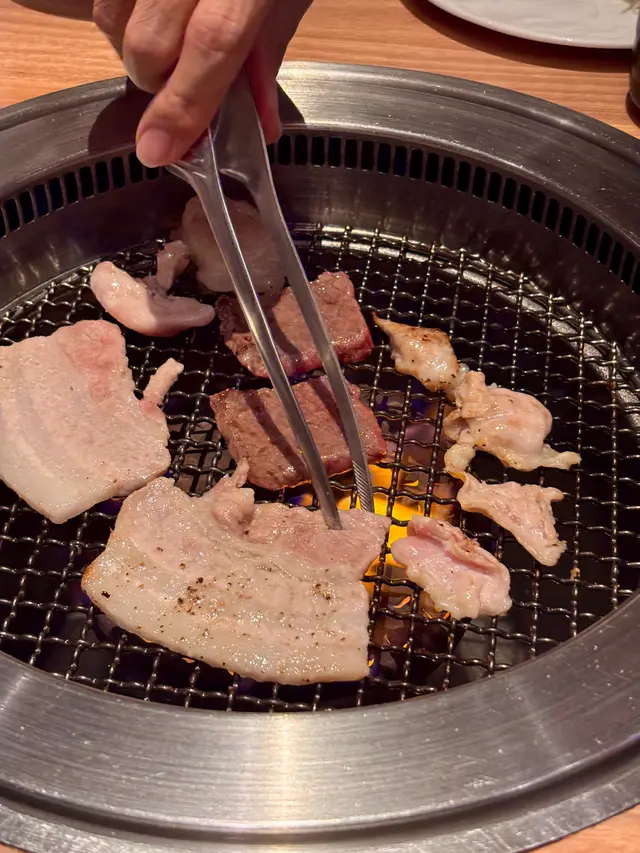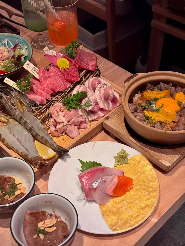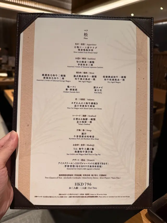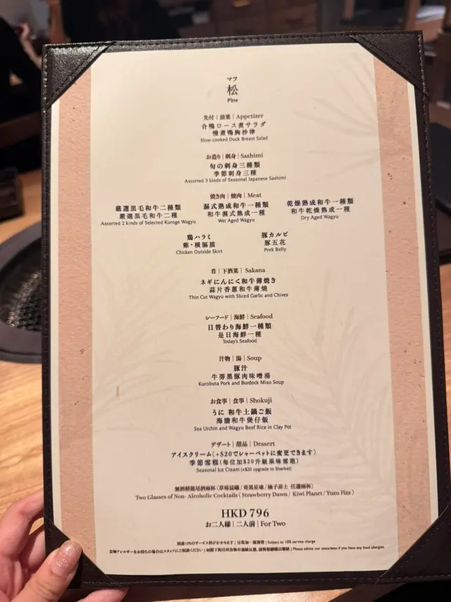 餐廳充滿日式氛圍中,松2人前套餐宛如一場精緻的肉食饗宴,展現出令人驚喜的性價比。季節刺身三種,有三文魚及2款魚刺身。非常新鮮夠厚切。慢煮鴨胸沙律,鴨胸粉嫩柔軟,脂香溫潤,搭配新鮮爽脆的沙律菜與酸甜醬汁,平衡得恰到好處,清新開胃又無負擔。海膽和牛薄燒,冰涼甘甜的海膽遇上脂香豐腴的和牛,捲起瞬間,冷與熱、鮮與醇在舌尖共舞,每一口都是極致享受。和牛蟹肉煲仔飯,超多和牛,食極都食唔完。頂級和牛油潤豐腴,蟹肉鮮甜細嫩,吸飽精華的米飯在熱煲中交融。再加埋牛蒡黑豚肉味噌湯無得頂。燒肉拼盤有兩款黑毛和牛、一款和牛濕成熟成及一款和牛乾燥熟成。包括內腹肉、辣椒肉、三角側肉、內側後腿肉、海蝦、豚五花及日本雞頸肉,非常豐富。在高溫烤網上稍加炙燒,和牛入口即化,脂香滿溢;內側後腿肉厚切得宜,彈牙多汁;三角側肉豐富的大理石油花在炭火催逼下融化,肉香與脂香交織,只需簡單沾上燒肉醬,和牛的極致美味發揮得淋漓盡致。不僅牛肉出色,豬與雞肉同樣品質上乘,經炭火洗禮後外焦內嫩。最後以冰淇淋作結,甜而不膩,為這頓豐盛燒肉畫下圓滿句點。松2人前套餐,無論在食材品質、份量搭配與用餐體驗上,都可謂尖沙咀地區燒肉愛好者的超值之選。…查看更多