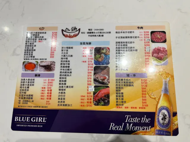 港式火鍋店,提供七款湯底,特別的是花雕醉雞和蕃茄薯仔鱷魚湯底,食材選擇眾多,而且酒類飲品選擇豐富,有日本、清酒、紅酒、威士忌等,適合朋友聚會。
