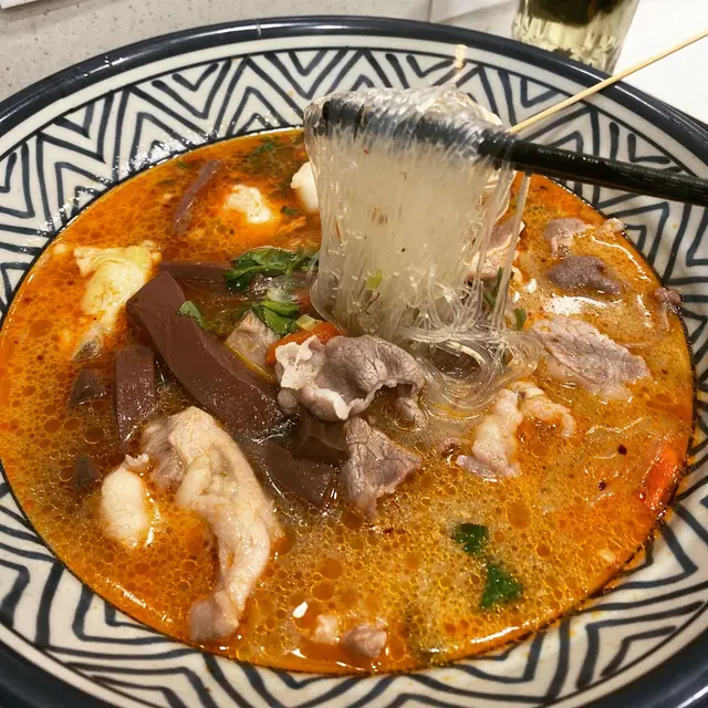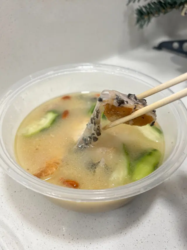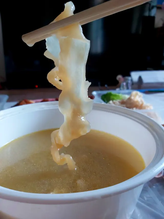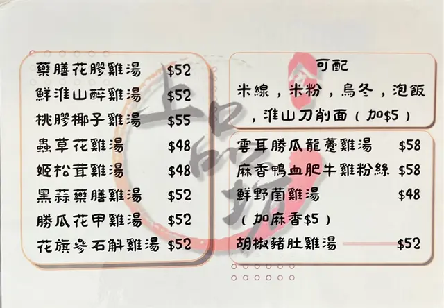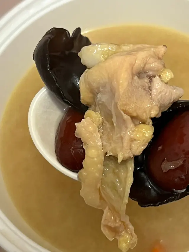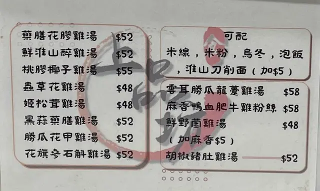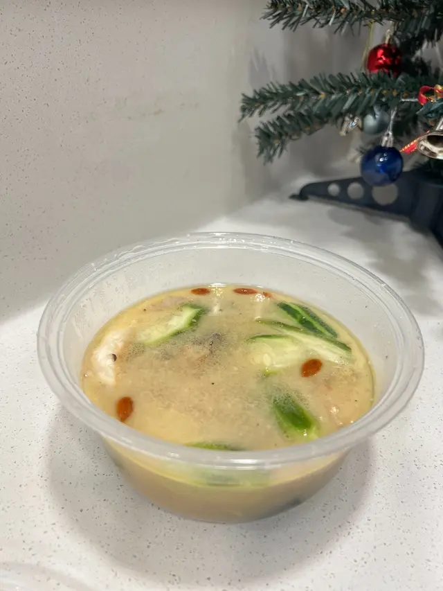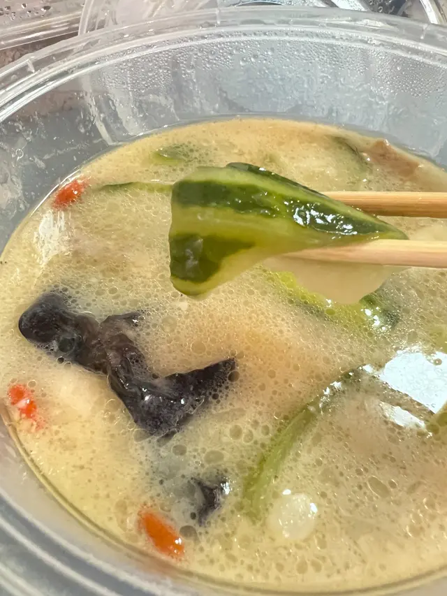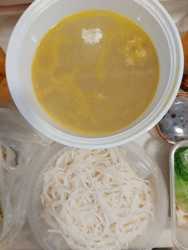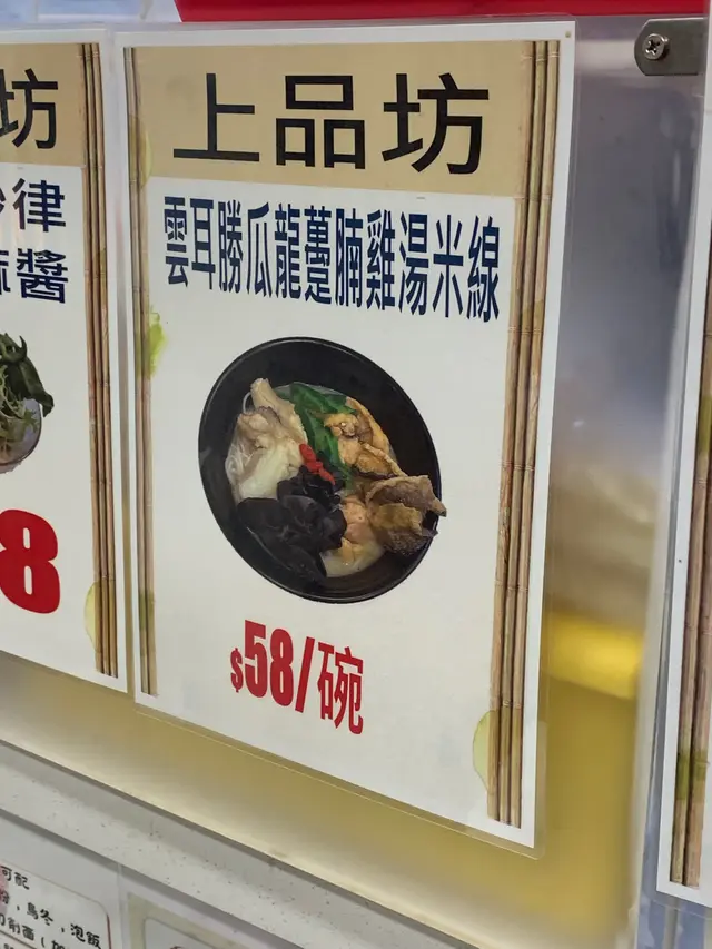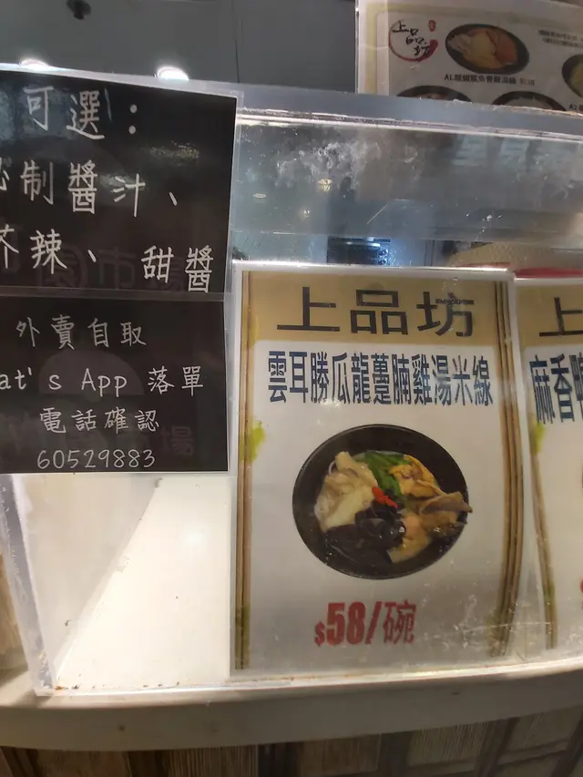 晚餐時間開開飯app碌吓附近餐廳有咩美食醫肚,見到上品坊有外賣自取,唔洗打電話講嘢,喺app㩒就可以預先落單,非常方便。揀咗勝瓜花甲湯米粉俾家人,自己就食蟲草花雞湯米粉。試第一啖雞湯,清甜濃郁不肥膩,雞件數量以價錢黎講亦算合理,米粉不是普通的東莞米粉,是有口感、不易碎的米粉,最後我一滴不漏的完成整碗外賣。唯一不可取的是,此餐廳在開飯app上的自取時間為落單當刻後30分鐘,即便我已經夠鐘才到取,店長仍要我多等一會,可是前面卻沒有任何堂食或外賣訂單在等。…查看更多