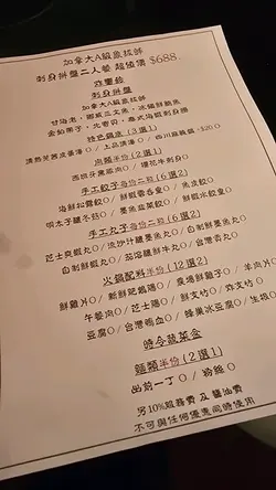 正價88折 單點餐牌
