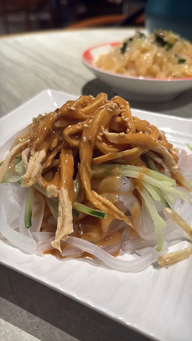 和朋友到愉景新城的「上海名居」吃上海菜,試了他們的二人套餐,$280已包加一,涼菜、點心、主食、小菜、甜品都有,性價比高,而且好好味!涼菜:鎮江肴肉 作為開胃菜,肴肉切成一口一件,滑溜的膠質與結實的肉質相結合,入口帶點鹹香,配上微酸的鎮江醋,清爽而不油膩,好好味!點心:上湯小籠包 小籠包皮薄餡靚,輕輕一夾已見湯汁滲出。上湯鮮甜,豬肉餡嫩滑,一口一隻,吃得十分滿足。主食:砂鍋雲吞雞湯 砂鍋上桌才掀起蓋子,熱氣騰騰的。職員幫我們盛湯,招呼十分週到。雞湯濃郁但不油膩,雲吞皮薄餡靚,還有一隻大雞脾點,點豉油吃超美味,湯很多,喝到飽,喝完暖胃又暖心。小菜:梅菜扣肉 扣肉肥瘦相間,用料靚,梅菜墊底,鹹香入味,與白飯絕配,令人想額外加碗白飯來吃。甜品:流心榴槤球 (2粒)榴槤控必試!外層炸得金黃酥脆,內裡是香濃流心榴槤醬,香氣四溢又不會太甜。意猶未盡,我們再加點甜品高力豆沙$52,這是我最喜愛的上海甜品!外層蛋白酥皮輕盈鬆化,內裡豆沙是改良過的,像吃紅豆沙質感,帶果皮味,熱辣辣上桌,咬下像空氣爆破的感覺,太治愈了!這個二人套餐是晚飯超值之選,份量十足,味道出色,環境舒適,服務也不錯。下次會再來試試其他菜式!…查看更多
