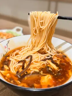 酸辣湯雲吞(5粒)接下來是酸辣湯雲吞,湯底酸辣適中,帶有微香。雲吞的皮薄餡多,內餡有鮮蝦與豬肉,口感有層次。酸辣味讓人食慾大開,非常開胃。