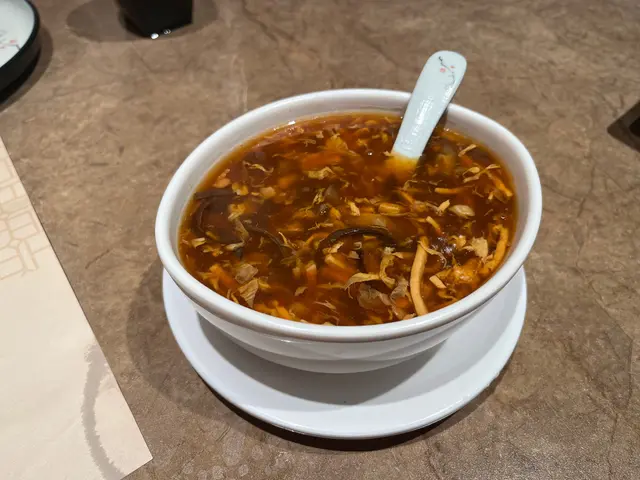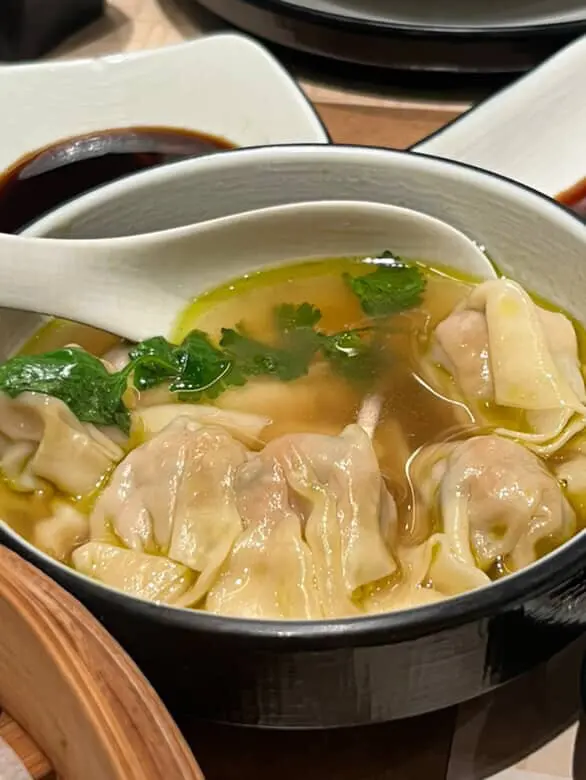 酸辣湯雲吞(5粒)接下來是酸辣湯雲吞,湯底酸辣適中,帶有微香。雲吞的皮薄餡多,內餡有鮮蝦與豬肉,口感有層次。酸辣味讓人食慾大開,非常開胃。