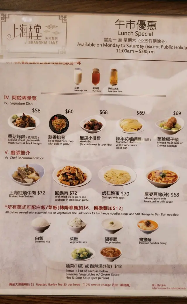其實呢間上海弄堂我幫趁過三次,因工作關係,我要大概下午三點後才能吃飯。我和朋友已經肚餓和很疲倦,想坐梳化位舒服啲,但一入到去職員竟然唔俾坐,話係員工吃飯用。由入場至我們走,只係有一個員工食飯,坐也只不過十分鐘。因幾次佢哋都係咁,有位都唔俾人坐,我決定唔再幫趁了。服務態度也只是一般。其實員工都可以坐其他位,點解一定要坐梳化位?