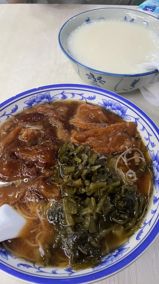 雪菜牛筋米+熱豆漿