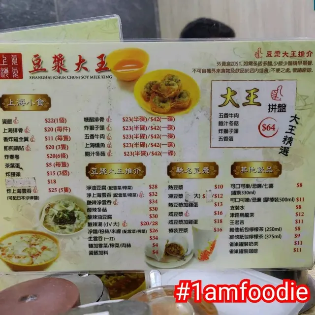 上海真真豆漿大王 (紅磡) 網址: https://s.openrice.com/QrbS06K8000 地址: 香港紅磡蕪湖街48號地下 電話: +852 27662588