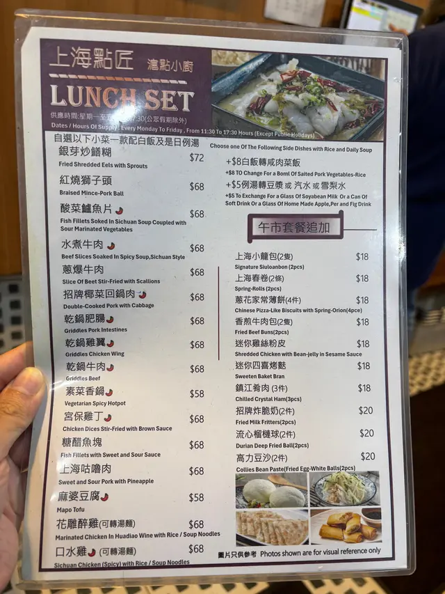最後一天假期後,逛得累了,路過這家上海菜館,有$280的二人套餐,性價比不錯,有小食、點心、主菜及甜品,而且差不多滿座,立即入座點餐吧!小食選了鎮江肴肉,是我們喜歡的上海菜式,喜歡高湯配合爽口咸肉,冷藏成結實的啫哩狀,入口即溶,又變回湯汁,混着肉在口腔內細味,不會太鹹,是開胃之選。點心選了小籠包,真的皮薄、多汁、餡多,上菜時熱氣騰騰,稍微等一等才夾起,一口一個,由於皮很薄,所以夾起來的時候要小心避免穿皮,考考自己的筷子功!主菜選了回鍋肉,腩片半肥瘦肥瘦,菜炒得爽口,帶微辣,還有青紅椒、乾辣椒幫助揮發香氣,大大碟份量足,吃得很爽!水煮魚有驚喜,賣相吸引,令人食慾大增,魚片口感嫩滑無骨,再加上芫荽、芽菜、薯粉、萵筍、雲耳,配料豐富!點了小辣,拌白飯吃,又香又麻痕過癮,很豐富很滋味啊!最後,甜品點了高力豆沙,上菜時還有一陣熱熱的霧氣。十分喜歡外層空氣感麵粉,一咬下,摧毀這個軟呼呼的麵團,超邪惡!豆沙蓉餡軟滑香甜,是口感與味蕾的享受!誤打誤撞的吃上一頓傳統上海美食,非常滿足,套餐$280,每位茶位$3,吃得好味又夠飽,超值了!…查看更多