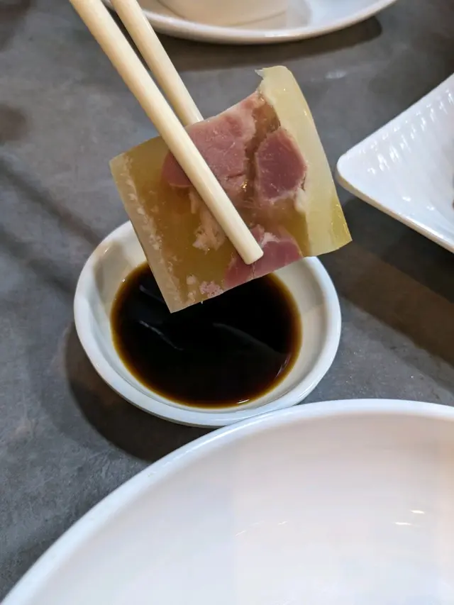 最後一天假期後,逛得累了,路過這家上海菜館,有$280的二人套餐,性價比不錯,有小食、點心、主菜及甜品,而且差不多滿座,立即入座點餐吧!小食選了鎮江肴肉,是我們喜歡的上海菜式,喜歡高湯配合爽口咸肉,冷藏成結實的啫哩狀,入口即溶,又變回湯汁,混着肉在口腔內細味,不會太鹹,是開胃之選。點心選了小籠包,真的皮薄、多汁、餡多,上菜時熱氣騰騰,稍微等一等才夾起,一口一個,由於皮很薄,所以夾起來的時候要小心避免穿皮,考考自己的筷子功!主菜選了回鍋肉,腩片半肥瘦肥瘦,菜炒得爽口,帶微辣,還有青紅椒、乾辣椒幫助揮發香氣,大大碟份量足,吃得很爽!水煮魚有驚喜,賣相吸引,令人食慾大增,魚片口感嫩滑無骨,再加上芫荽、芽菜、薯粉、萵筍、雲耳,配料豐富!點了小辣,拌白飯吃,又香又麻痕過癮,很豐富很滋味啊!最後,甜品點了高力豆沙,上菜時還有一陣熱熱的霧氣。十分喜歡外層空氣感麵粉,一咬下,摧毀這個軟呼呼的麵團,超邪惡!豆沙蓉餡軟滑香甜,是口感與味蕾的享受!誤打誤撞的吃上一頓傳統上海美食,非常滿足,套餐$280,每位茶位$3,吃得好味又夠飽,超值了!…查看更多