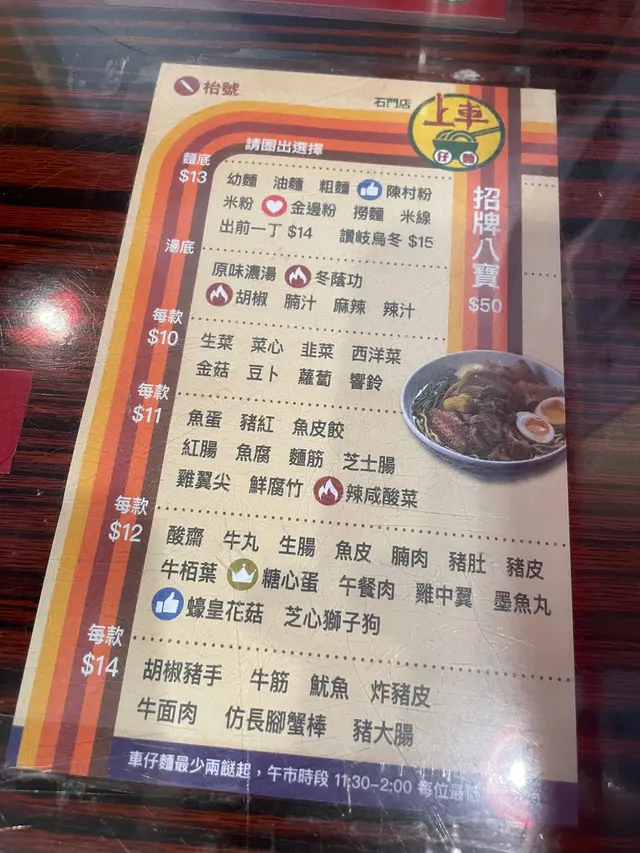上車車仔麵 (沙田) 網址: https://s.openrice.com/QrbS0zGw400 地址: 香港沙田石門安群街3號京瑞廣場1期地下G06號舖 電話: +852 24480028