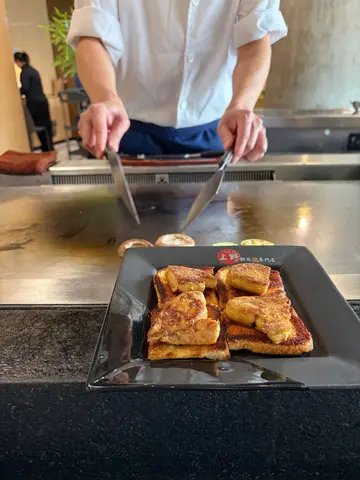 一段日子無食過鐵板燒,發現九龍城開左間新鐵板燒,原來係旺角老牌鐵板燒餐廳既新分店,話說想當年吃貨小妹人生第一次食鐵板燒好似就係旺角上野!叫咗個二人前限定套餐 十道菜:有齊刺身、沙津、兩款海鮮、兩款肉類、炒飯、麵豉湯、炒野菜、仲有甜品🤤$1038 for two 以今時今日嚟講都真係幾抵食其中兩道海鮮都好有記憶點師傅話黃金老虎大蝦係餐廳招牌菜,肉質好彈牙 仲好大隻!用牛油同用以蝦膏祕制既黃金汁黎煮,非常惹味!真係超好味鐵板廣島蠔煎到焦糖色 但仍然保留住肉汁 漲卜卜非常肥美 加埋炒香左嘅煙肉同櫻花蝦一齊食 味道馬上再提升左鵝肝同日本黑毛豬之間我地揀左後者,估唔到豬都可以煎得咁香不過如果要比較,鐵板牛料理仍然係我嘅首選🤭另一道美國頂級牛柳加埋蒜片真係無得輸師傅即場係鐵板上炸蒜片,見到蒜片比平日大塊,好奇問之下知道餐廳係用獨子蒜,個蒜片真係炸得好乾身,仲帶有甜味,所以都忍唔住食晒所有蒜片over all所有菜式嘅味道都係水準之上,配埋杯清酒 好滿足😌…查看更多