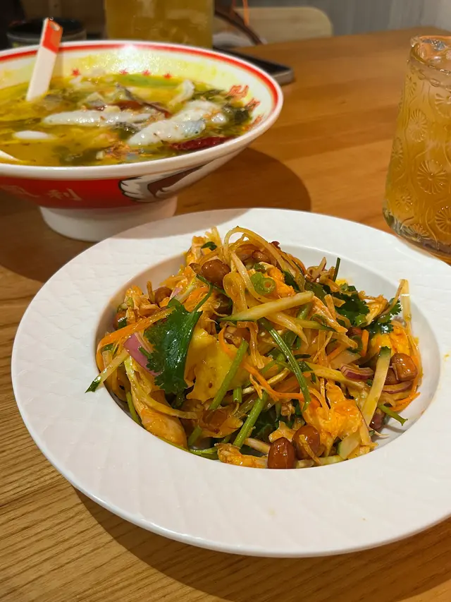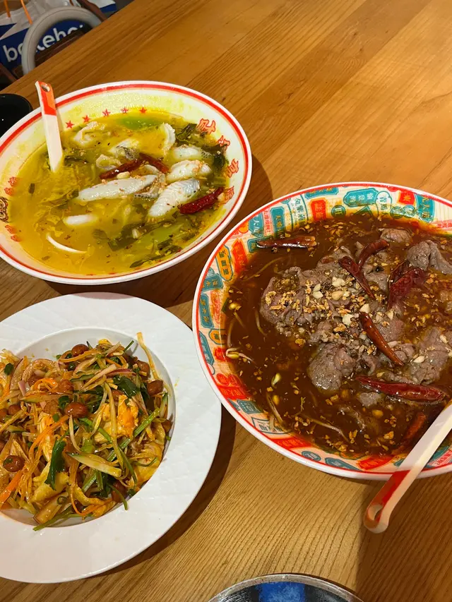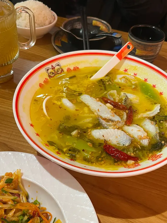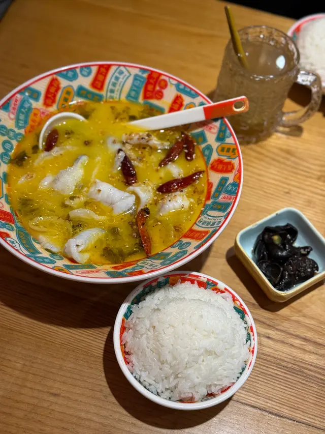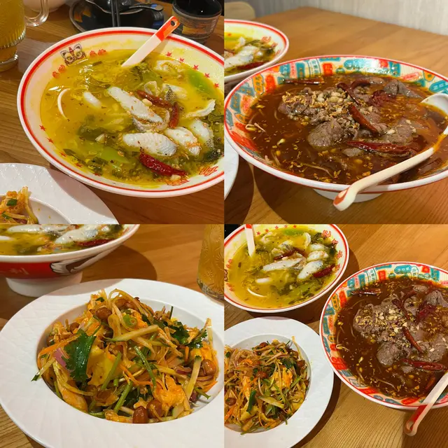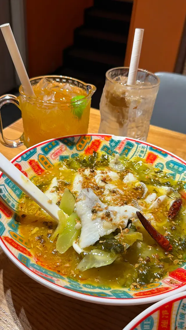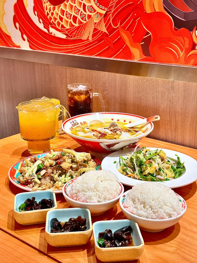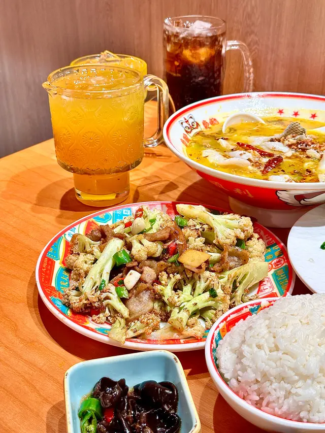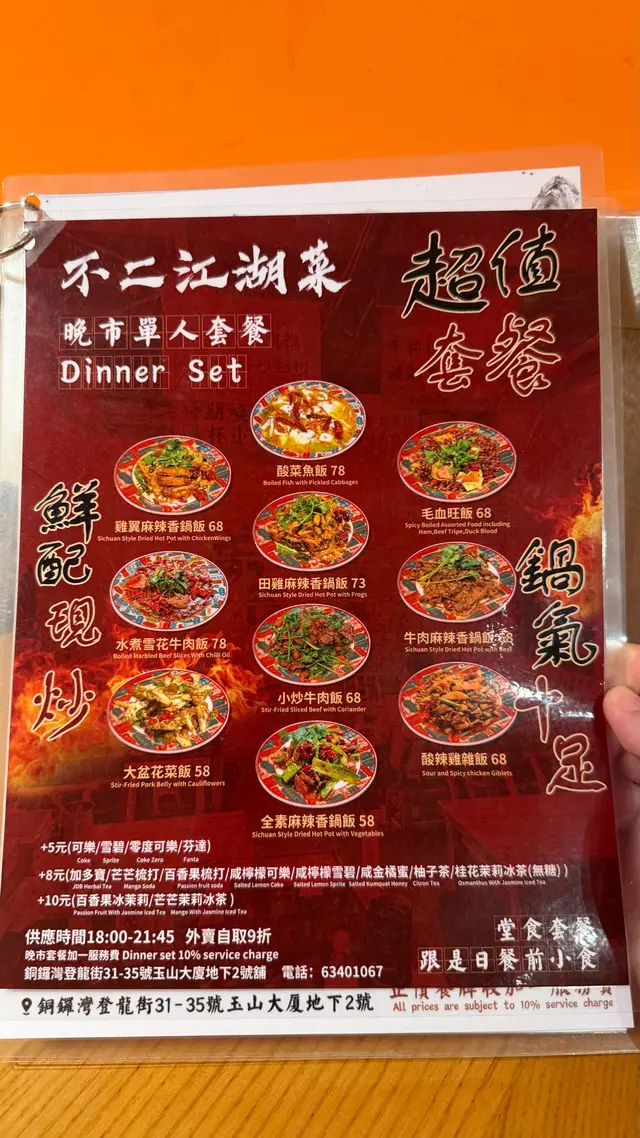 餐廳:不二江湖菜地點:銅鑼灣登龍街菜式:川菜餐牌:午餐有套餐,有19款飯,有辣有唔辣,可以加錢要飲品。落單用QR code。不二酸菜魚飯 $73 不二酸菜魚好大兜,有連皮滑溜魚片配有大量酸菜加萵苣片,材料豐富新鮮。可以揀辣度或者唔辣,我地叫左唔辣,都好夠味,鹹度剛好。鮮椒雪花牛肉飯 $73 呢個餸有唔少牛肉同埋紅綠椒粒加蓮藕粒同炒,我叫左少辣,味道已經夠辣,唔食辣椒粒就唔辣,呢道菜有爽口蓮藕粒好特別。農家小炒牛肉飯 $62 熱辣辣上枱,好有鑊氣。好多嫩口牛肉片撈有菜苗,洋蔥絲同紫洋蔥絲同炒,味道鹹香,好多料,呢個餸係唔辣,味道都好惹味。份量好多。每份餸都跟有一碗白飯。芒芒梳打 加$8百香果梳打 加$8凍柚子茶 加$8梳打超大杯,附上獨立包裝飲管。芒芒梳打芒果味濃,唔會太甜。百香果就清新d,仲加有青檸一件。凍柚子茶有唔少柚子皮喺底,甜度適中,三杯都好解渴解辣。總括而言,呢度食物質素高而好大份,呢個價錢抵食。餐廳星期日晚飯時間前都有唔少食客同外賣單。…查看更多
